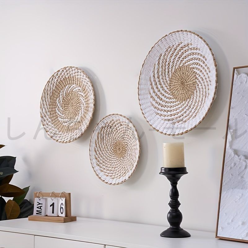 壁掛けインテリア 丸型 バスケット ウォールインテリア かご 籠 壁飾り アートパネル サークル 装飾 ホワイト 白 デコレーション ウォール
