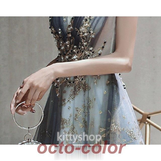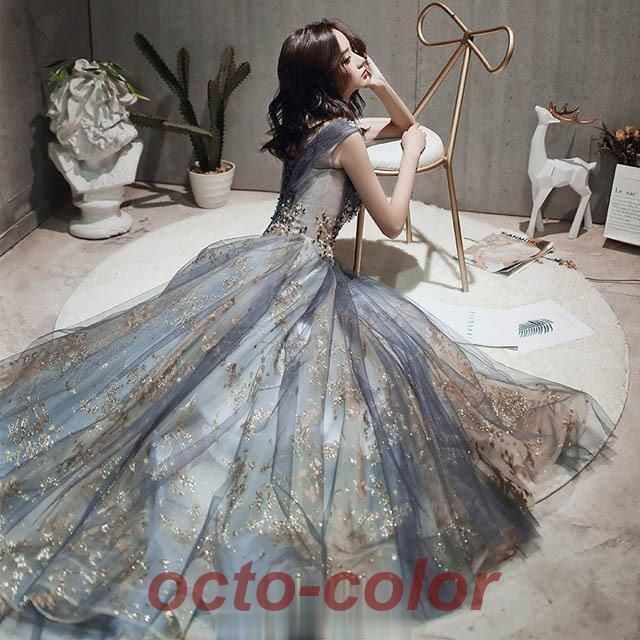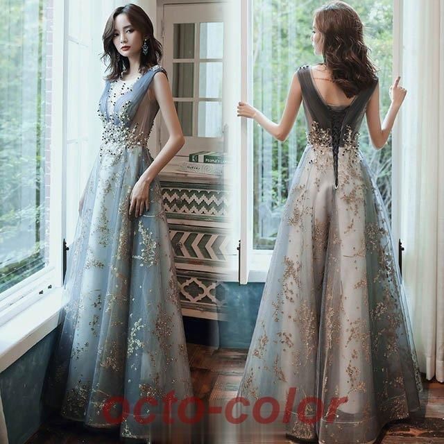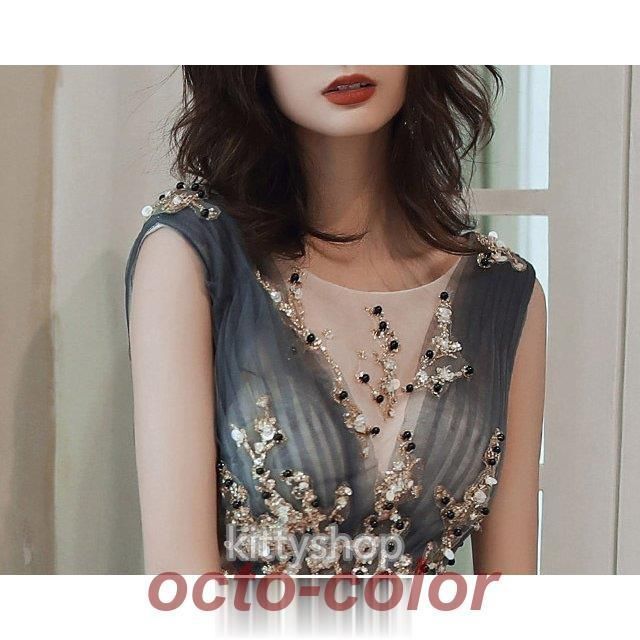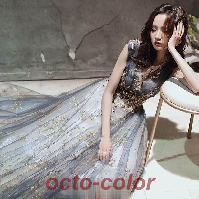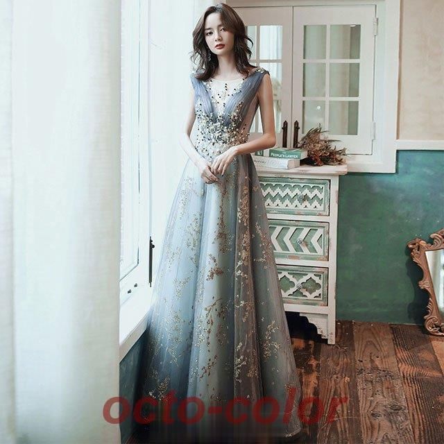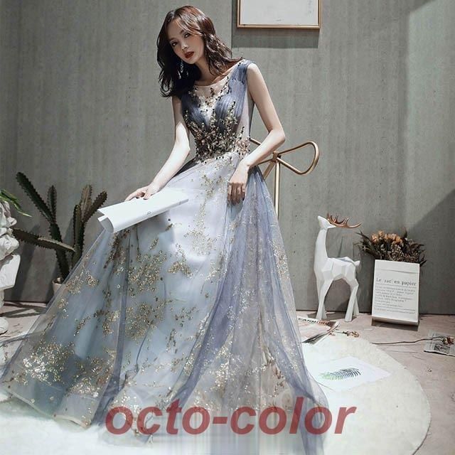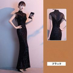 ロングドレス ノースリーブ イブニングドレス スパンコール キラキラ 発表会ドレス 演奏会ドレス キレイめ パーティードレス お呼ばれ 二次WP限定入荷