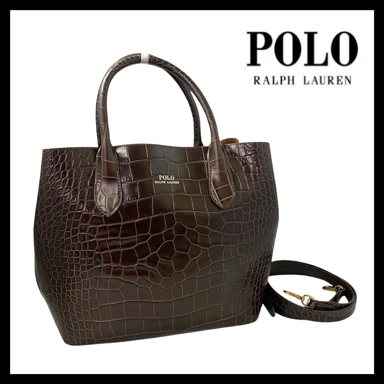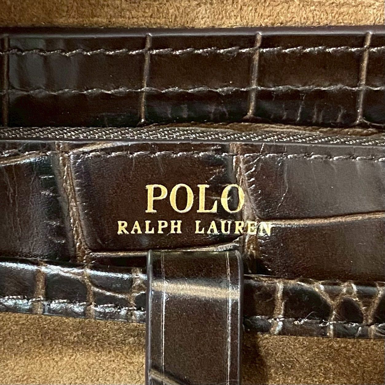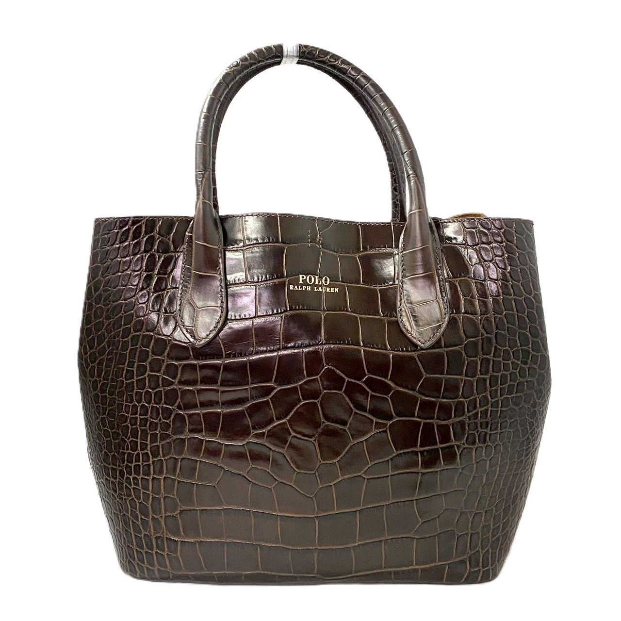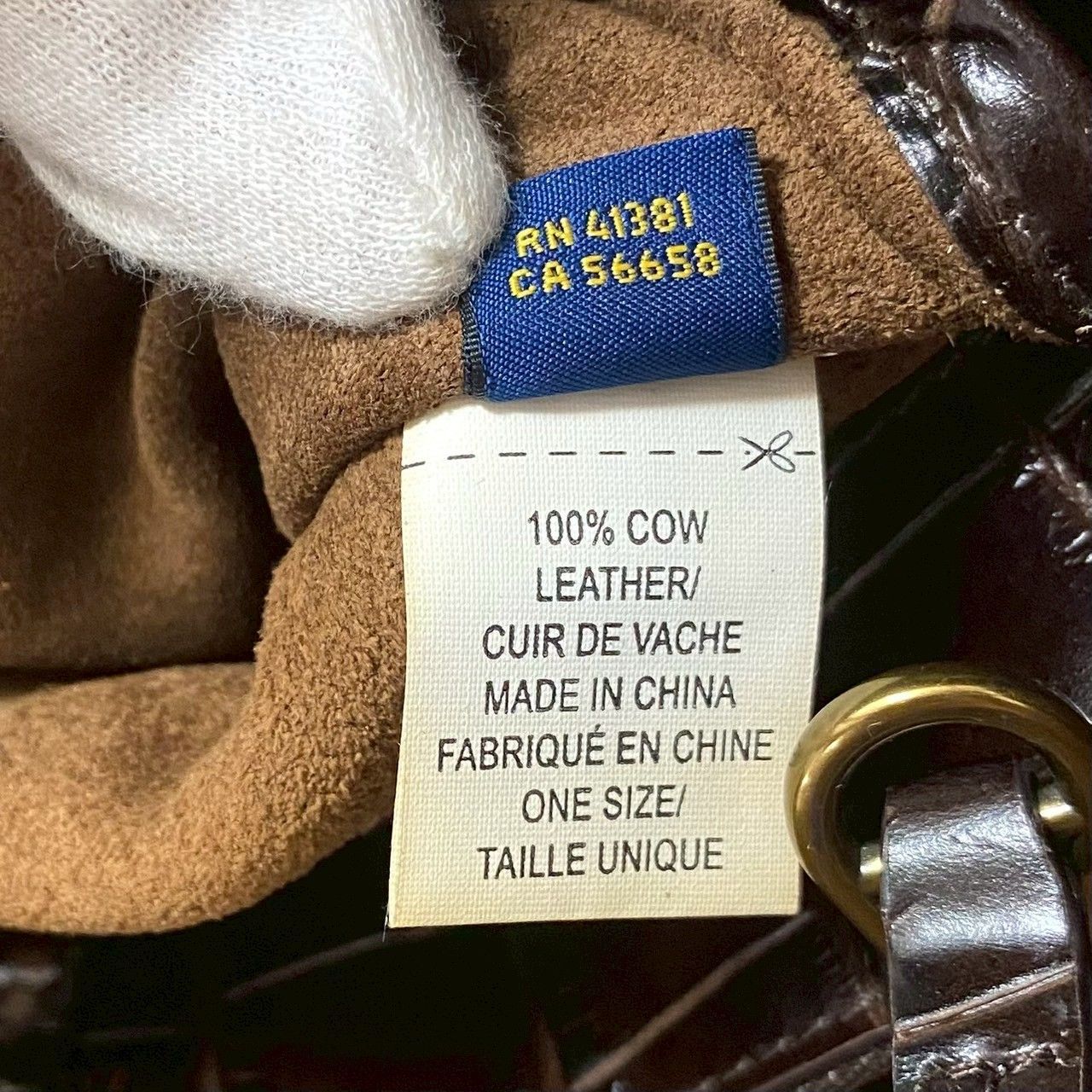M【POLO RALPH LAUREN】エンボスドベルポート 2Way バッグ クロコ型押し レザー ブラウン/茶 ショルダーバッグ トートバッグ ポロ ラルフローレン (59619NM3)