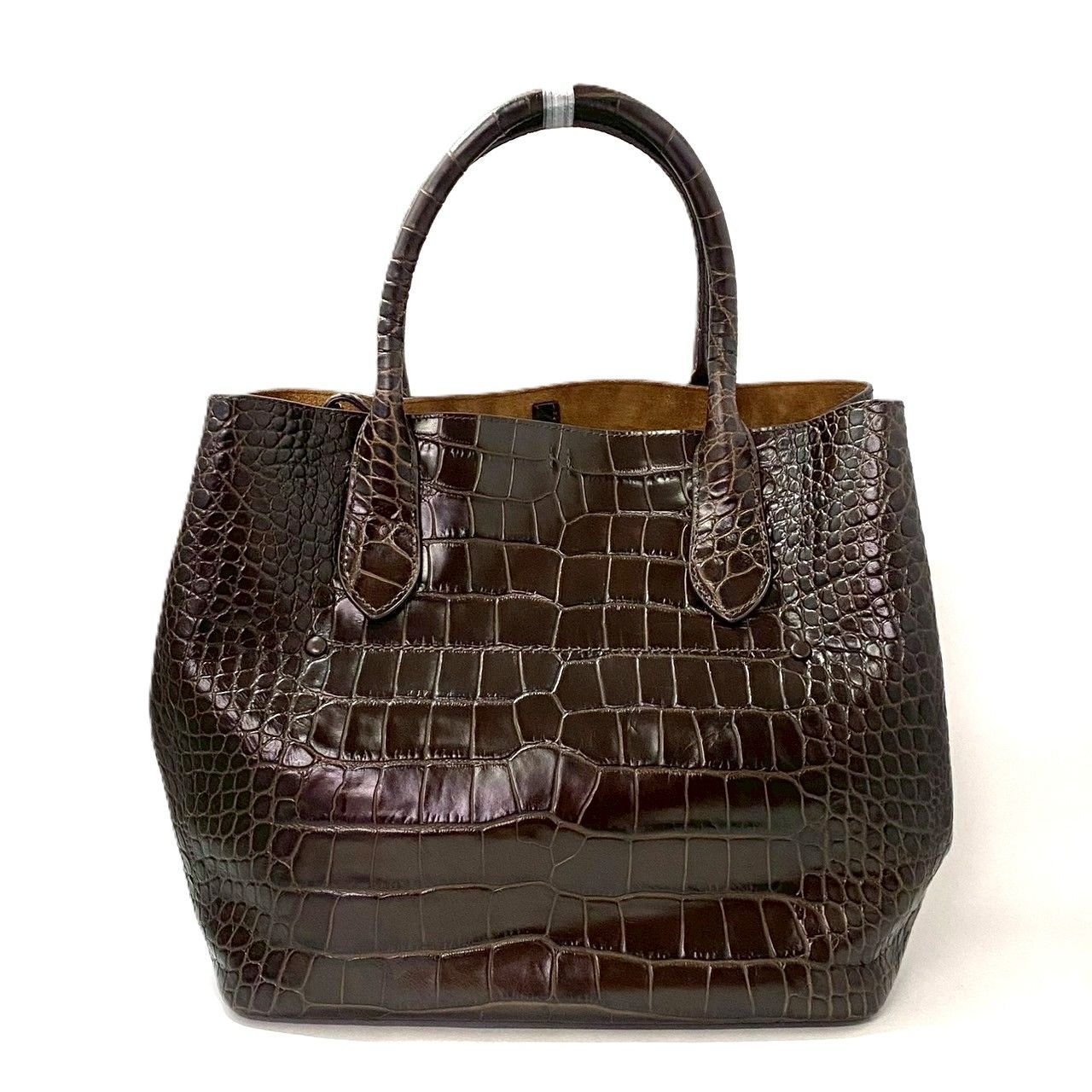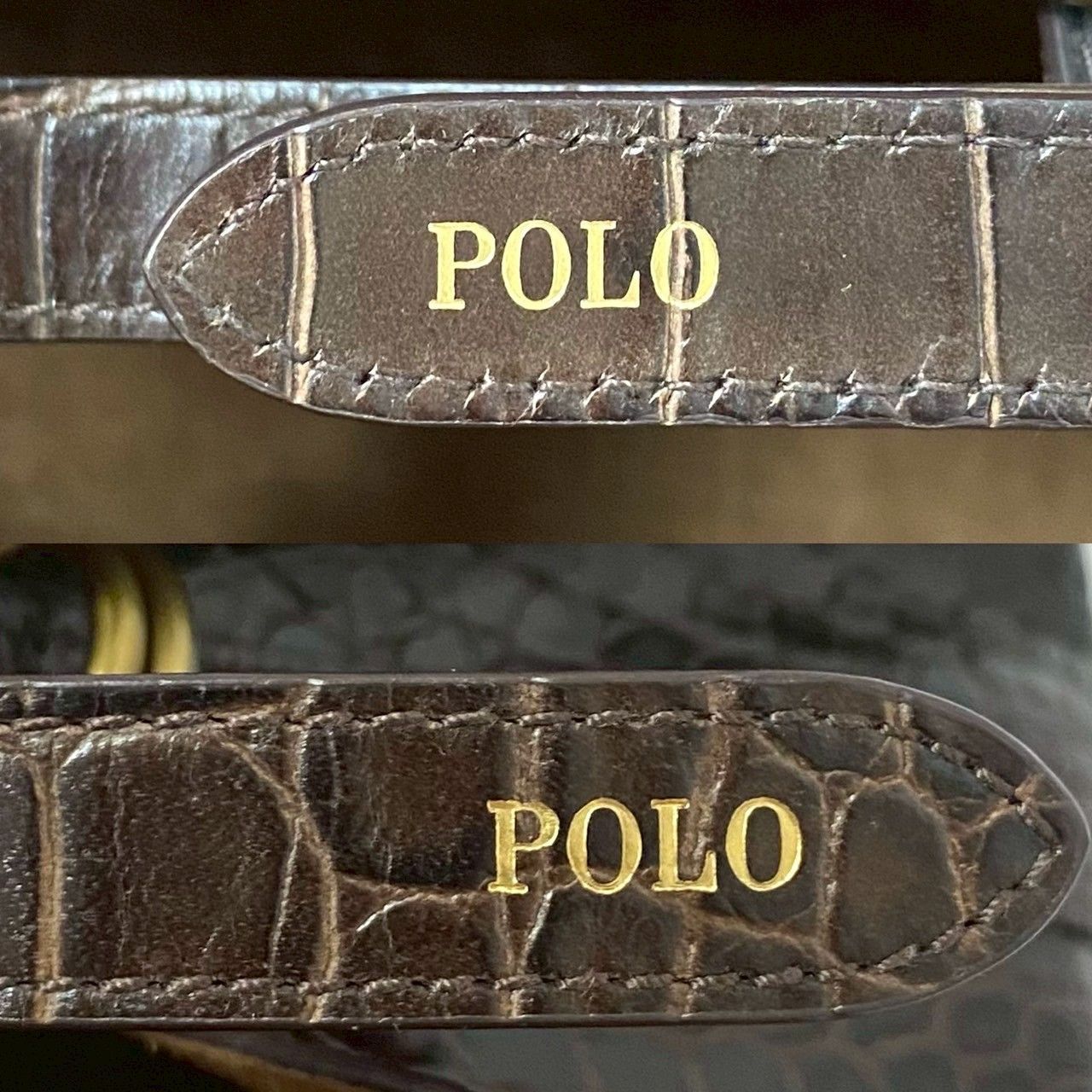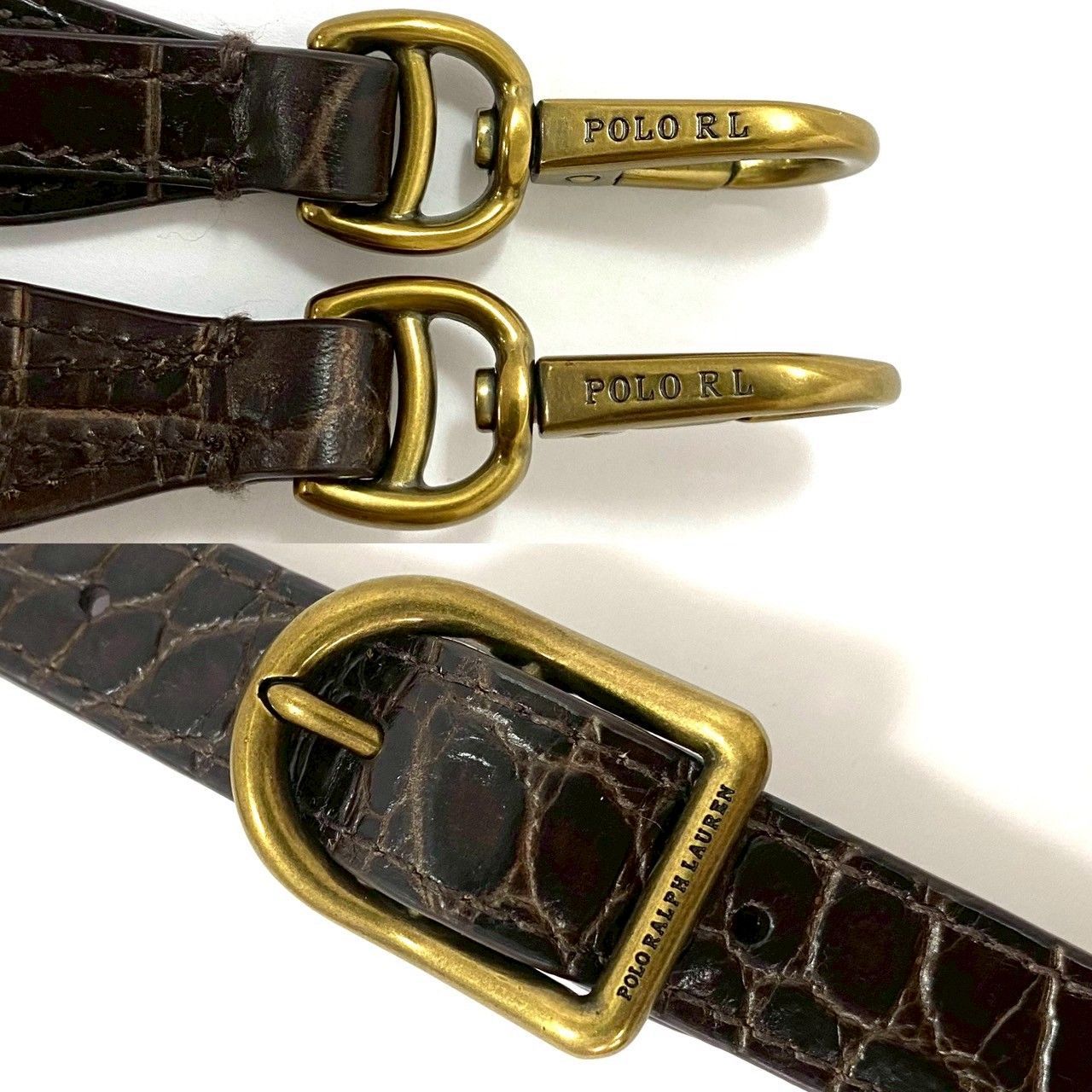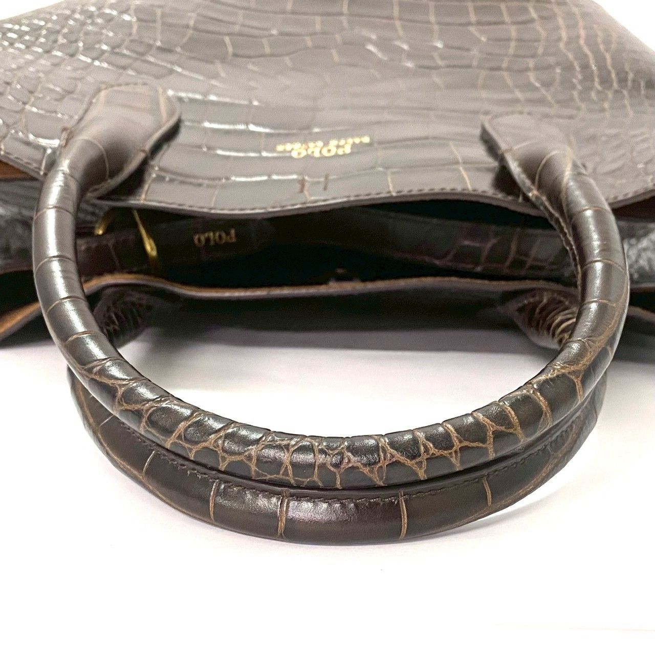 M【POLO RALPH LAUREN】エンボスドベルポート 2Way バッグ クロコ型押し レザー ブラウン/茶 ショルダーバッグ トートバッグ ポロ ラルフローレン (59619NM3)