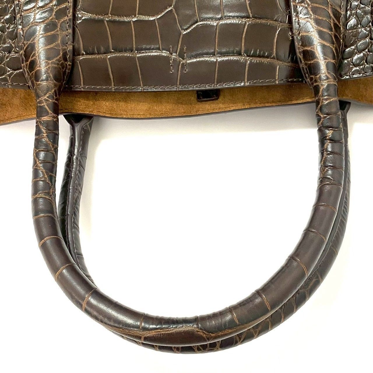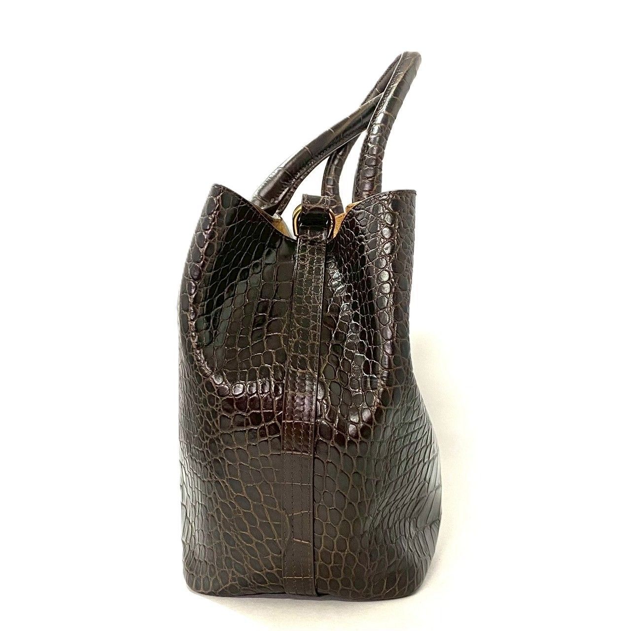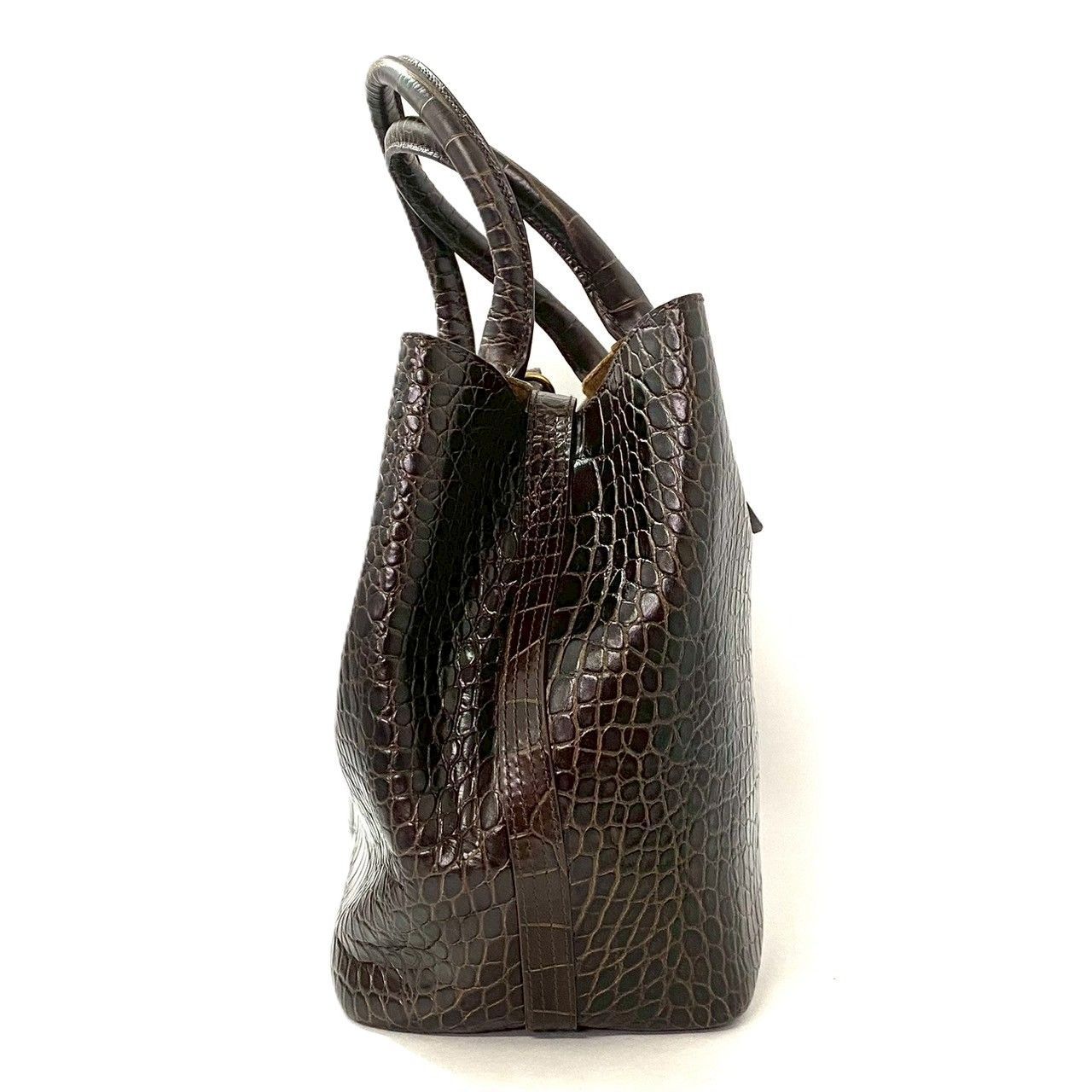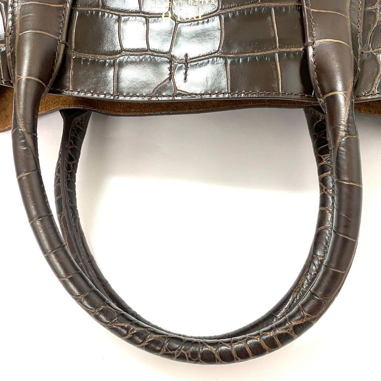 M【POLO RALPH LAUREN】エンボスドベルポート 2Way バッグ クロコ型押し レザー ブラウン/茶 ショルダーバッグ トートバッグ ポロ ラルフローレン (59619NM3)