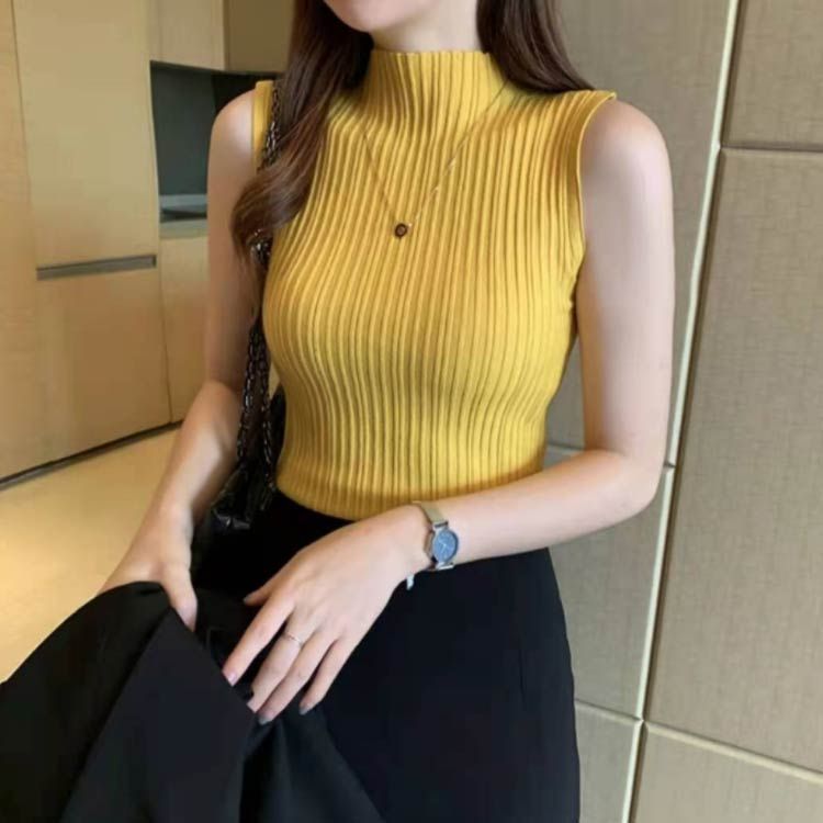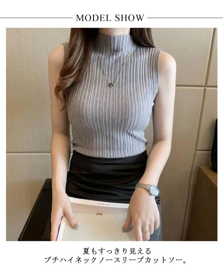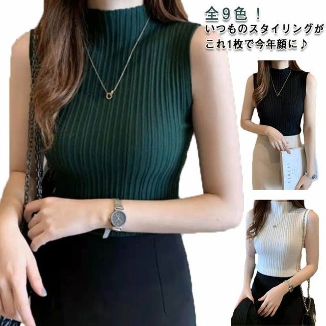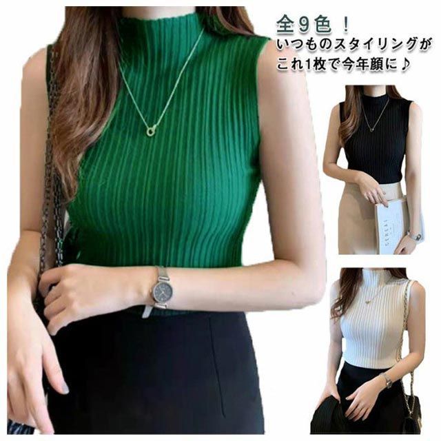 ハイネックニット サマーニット 全9色!ノースリーブニット ノースリーブ 春夏 全9色!ノースリーブニット プチハイネック 無地 ニット インナー コンパクト お洒落 可愛い#dkhsh592112