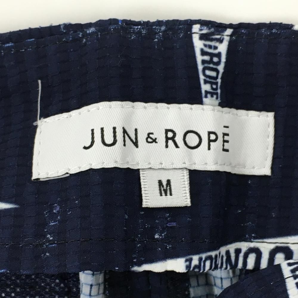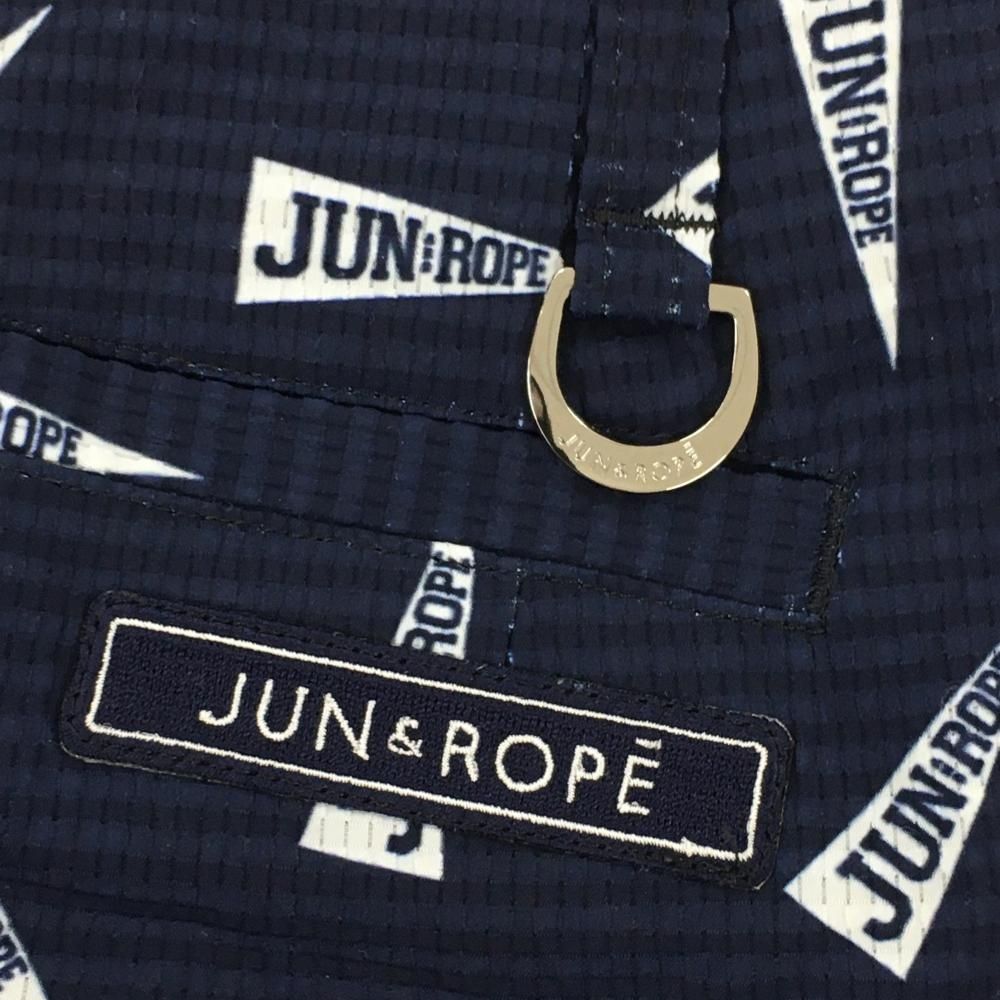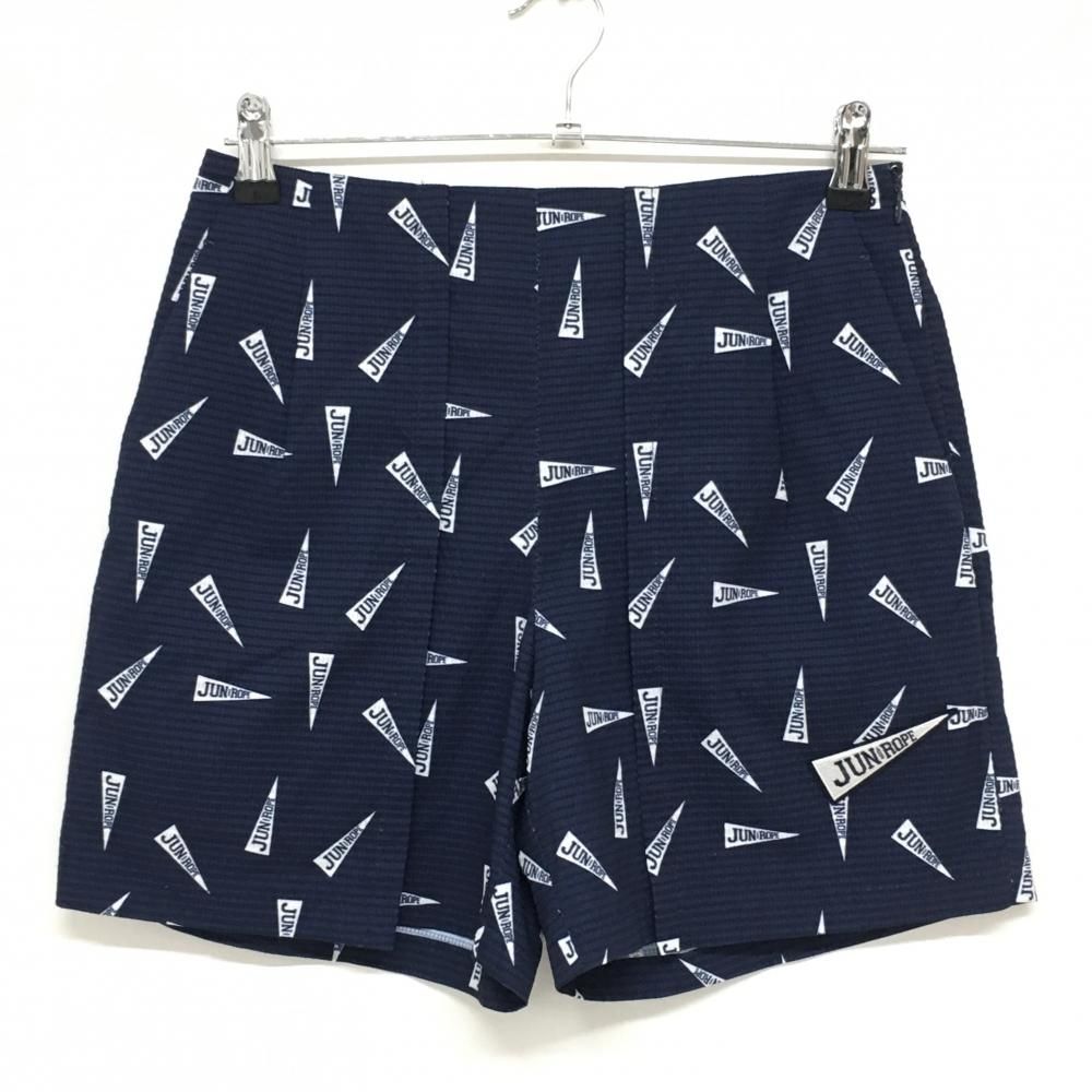 ★SALE価格★【美品】ジュンアンドロペ ショートパンツ ネイビー×白 フラッグ柄 織生地 レディース M ゴルフウェア JUN&ROPE