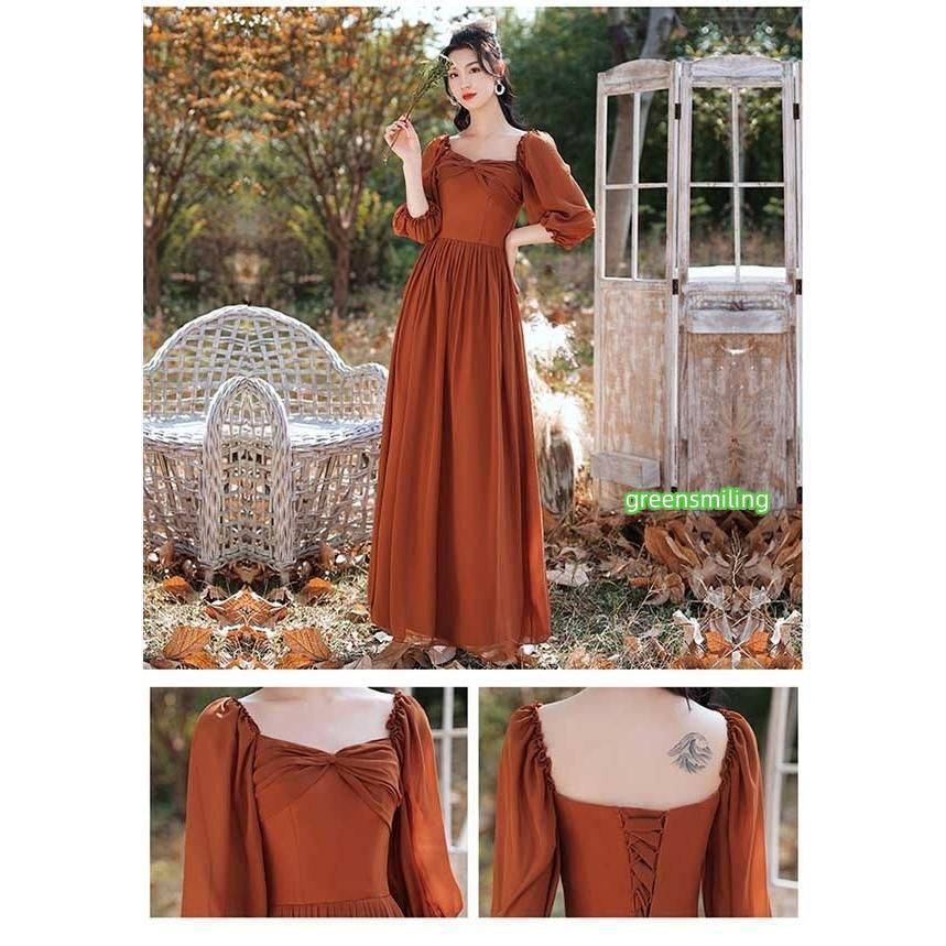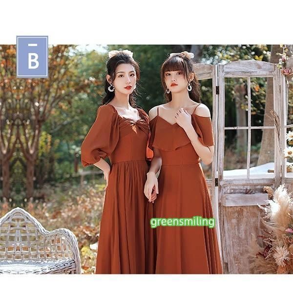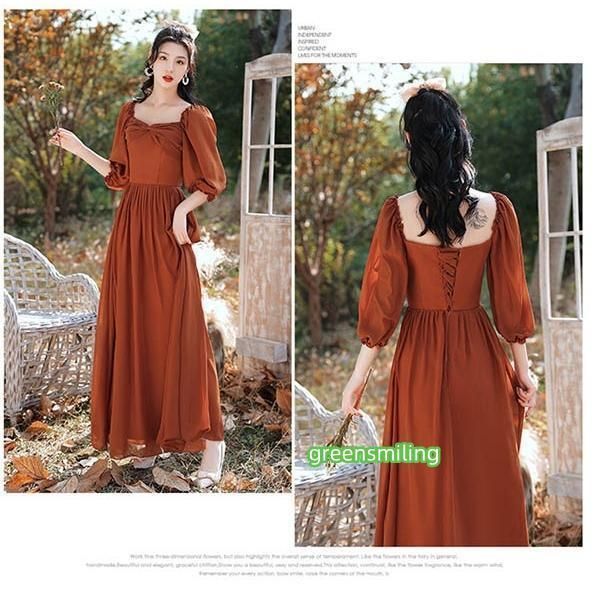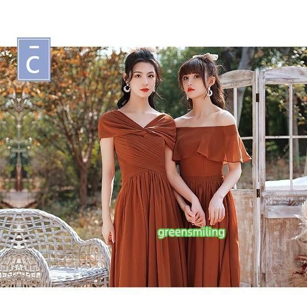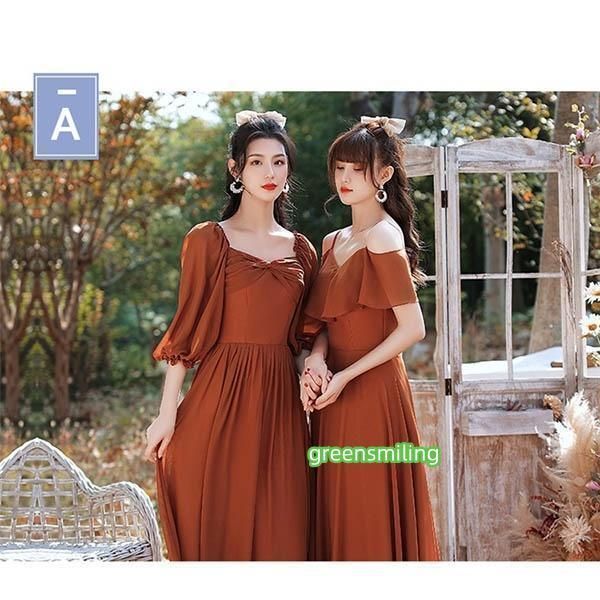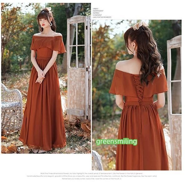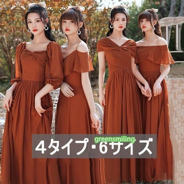 ロングドレス ブライズメイド ドレス ロング 演奏会 コンクール スクエアネック 4タイプ 袖あり 袖付き オフショルダー キャミソール 肩出し パーティードレス 結婚式 大きいサイズ 2XL 小さいサイズ XS 大人 ピアノ 発表会 体型カバー バルーン袖 フレア袖 お呼ばれ 二次会 キャメル da139g5g5c6