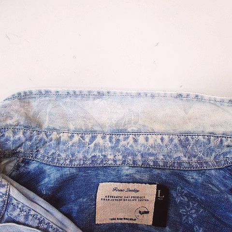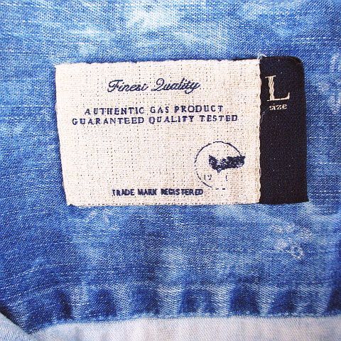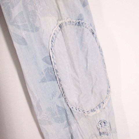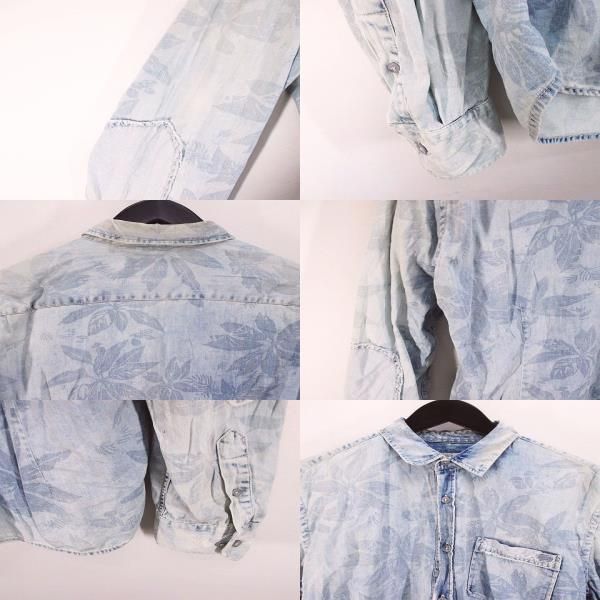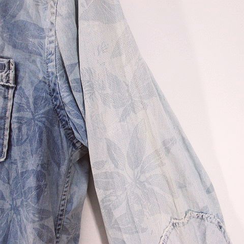 【商品名】ガス GAS ボタニカル 花柄 長袖 デニム シャツ L 青系 ライトブルー エルボーパッチ 刺繍 ボタン