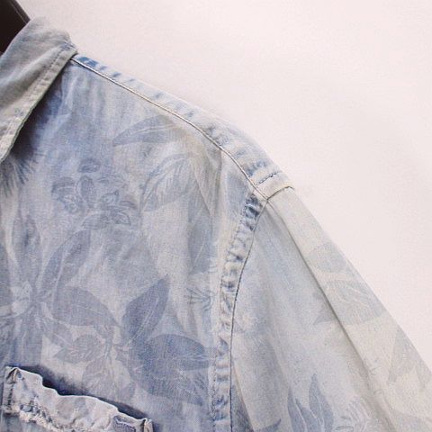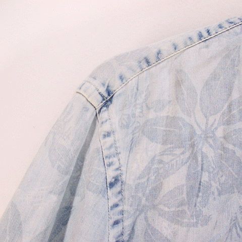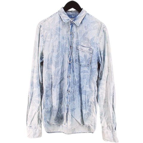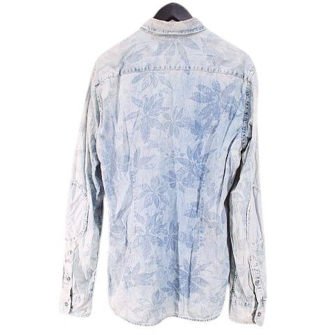 ガス GAS ボタニカル 花柄 長袖 デニム シャツ L 青系 ライトブルー エルボーパッチ 刺繍 ボタン