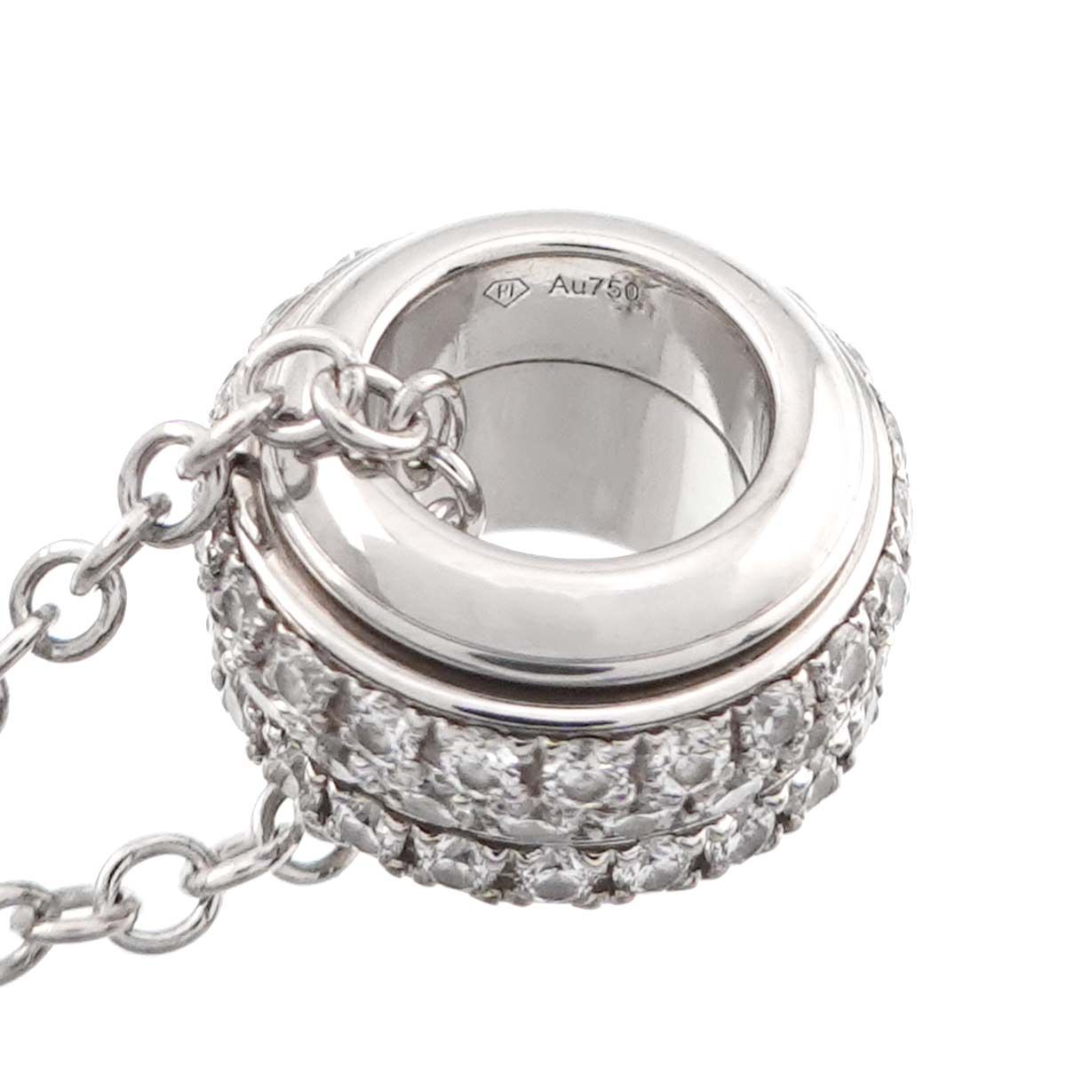 ピアジェの代表作「ポセション シリーズ」のネックレスです。回転するトップにパヴェダイヤが施され、ホワイトゴールド素材が上品に胸元を演出してくれます。