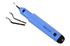 バリ取り用クランクリーマー:配管工事等で金属管・銅管の切断面のバリを除去するハンドル式のバリ取り工具です。フレア加工の切り口部分を整えたり、他の金属製品の面取りの際にご利用いただけます。