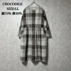 Crocodile 長袖シャツワンピース クロコダイル 長袖シャツ ワンピース ロングワンピース グレー Lサイズ