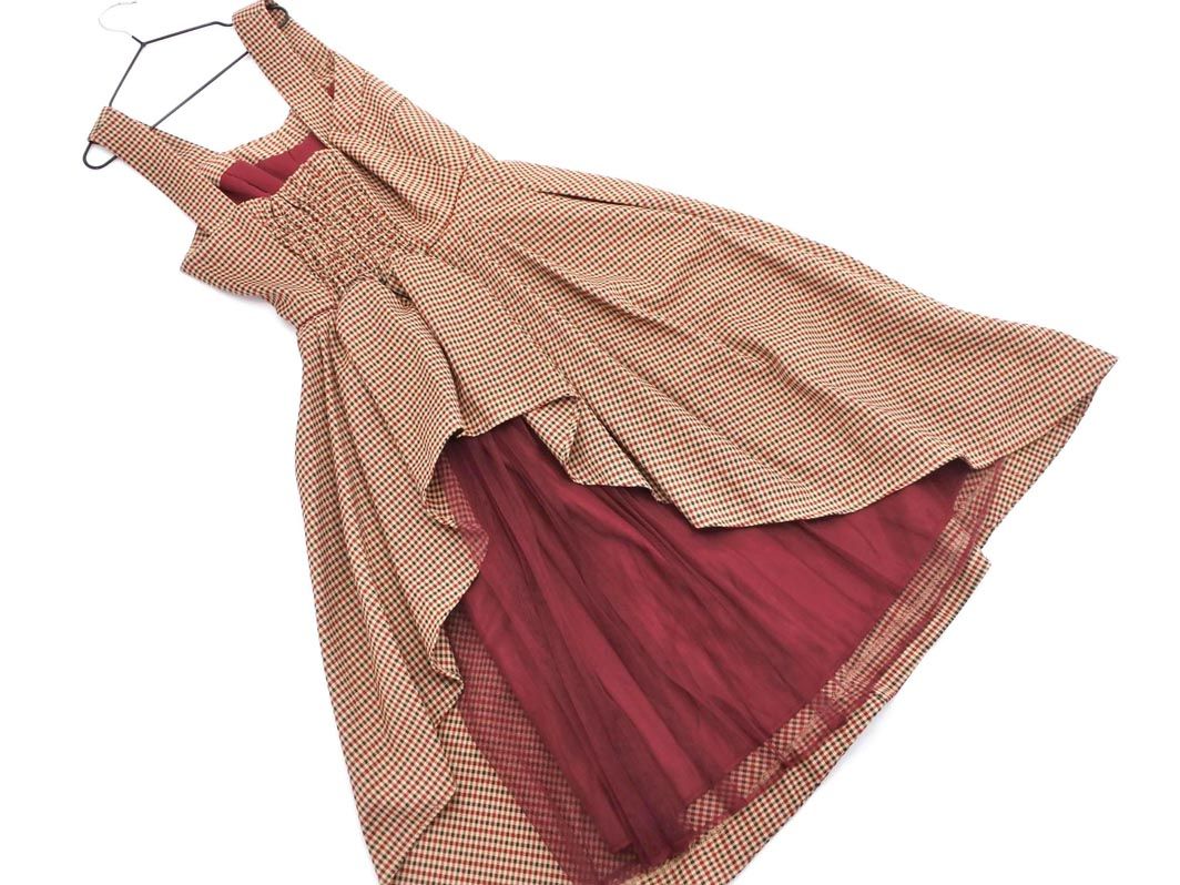 31 Sons de mode トランテアンソンドゥモード チェック キャミソール ワンピース size36/ベージュx赤 ■◆ レディース