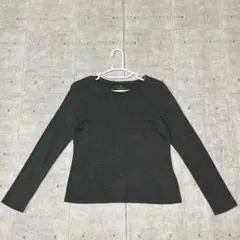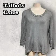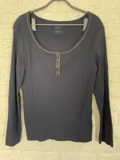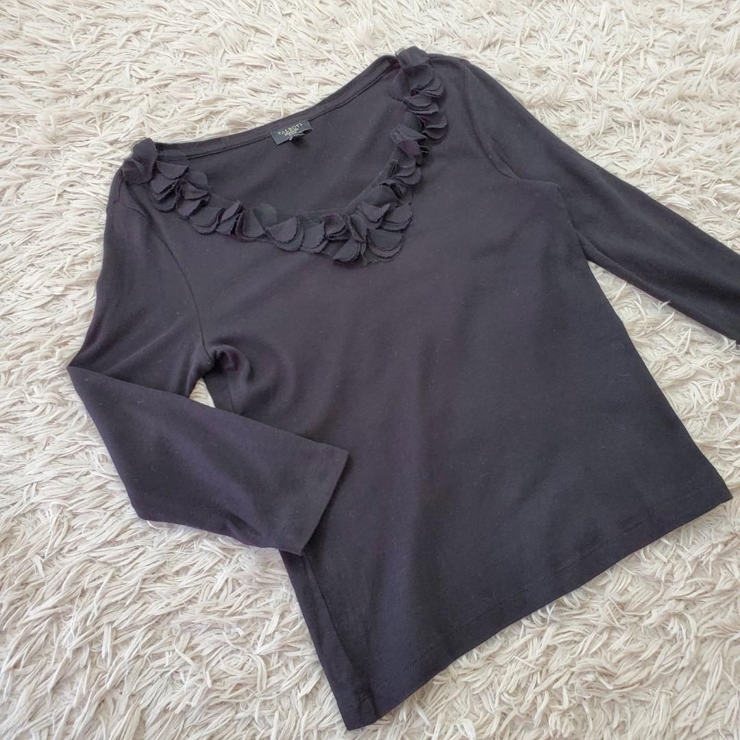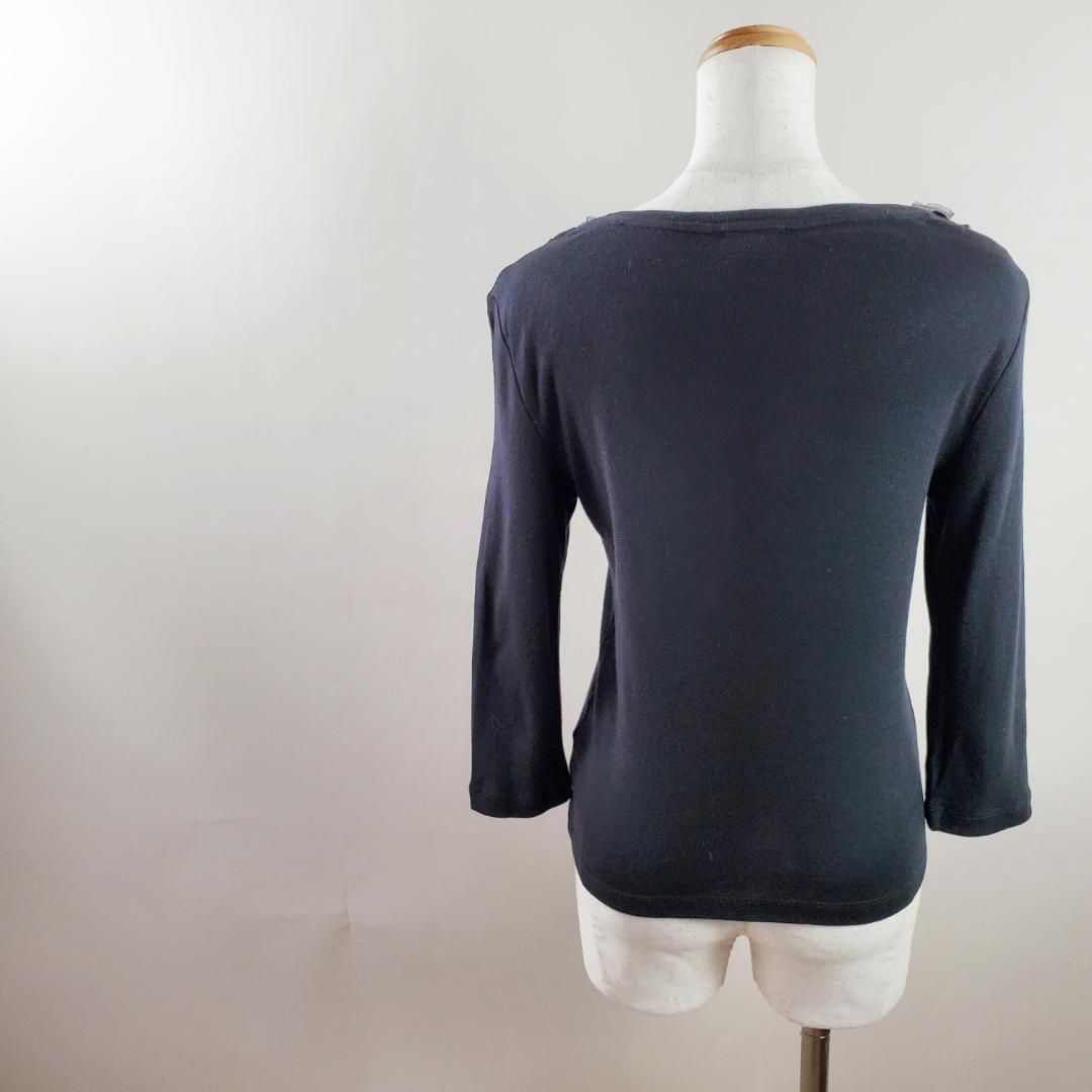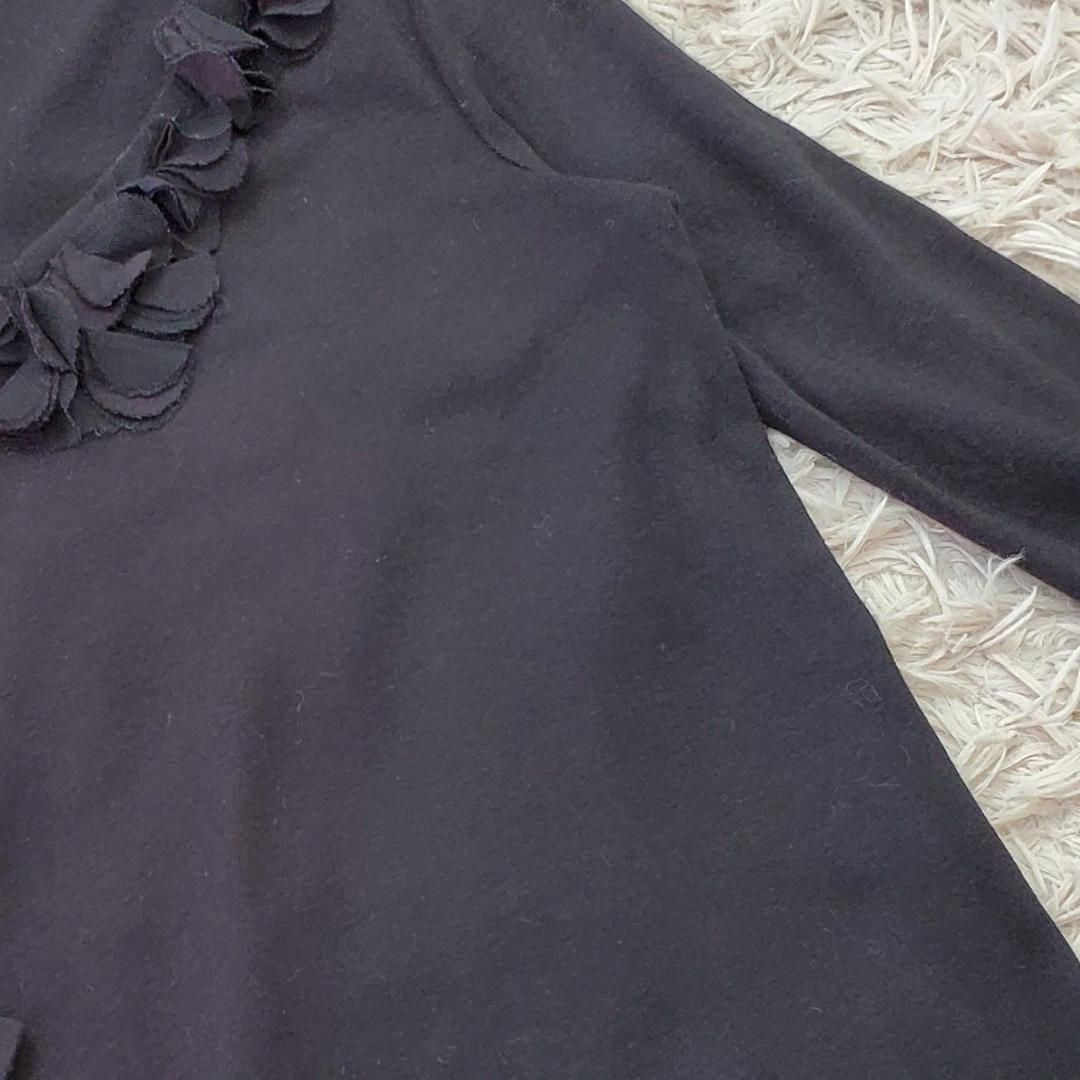 【レースフリルネック】タルボット オーバルネック 七分袖 フリルカットソー 黒 ブラック M相当