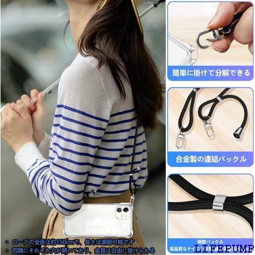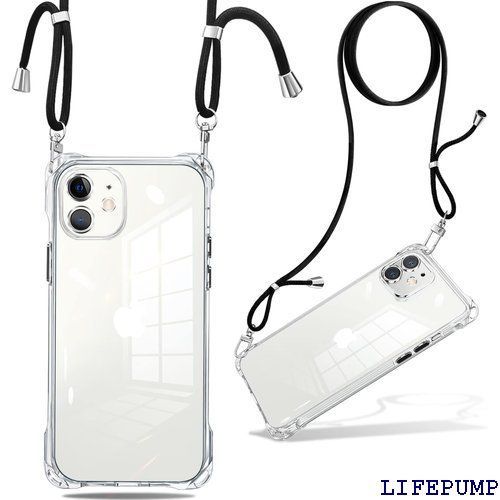 iPhone 12 mini ケース クリア ショルダー 耐衝撃 ストラップ付き スマホケース アイフォン12mini カバー 透明 薄型 軽量 TPUスマホ シリコン 紐付き 斜めがけ 織りストラップ付き 肩掛け 調節可能なショルダー 保護 全透明 991