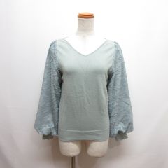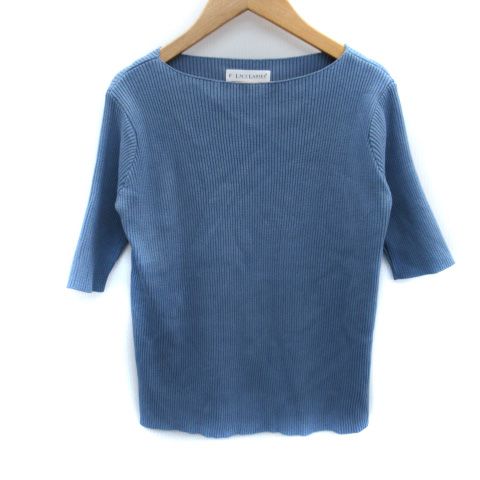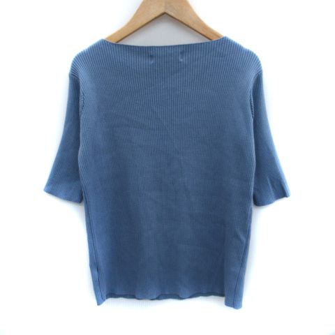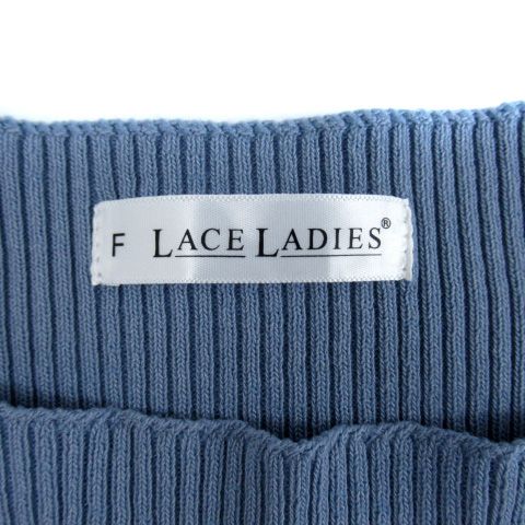 レースレディース LACE LADIES ニット カットソー 五分袖 ラウンドネック リブ F 青 ブルー /SM35