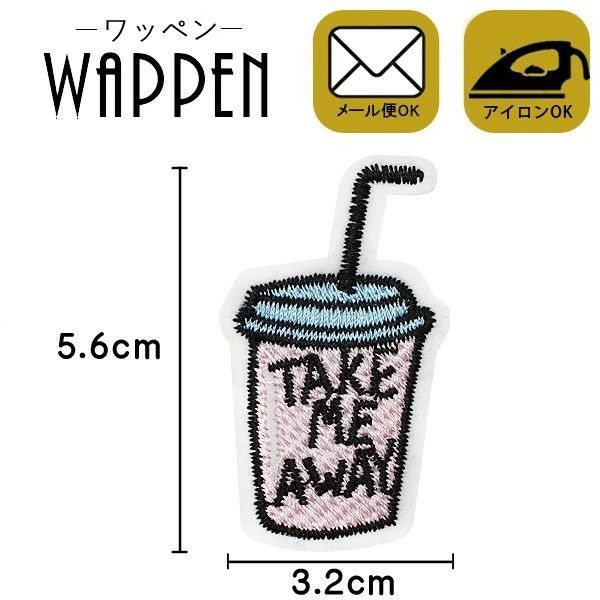 ワッペン 刺繍 アイロン接着 縦5.6cm×横3.2cm ドリンク 英語 アイロンワッペン 手芸 ワッペンデコ ワッペンカスタム 入園 入学 わっぺん アップリケ あっぷりけ wappen マスク用小さいサイズ