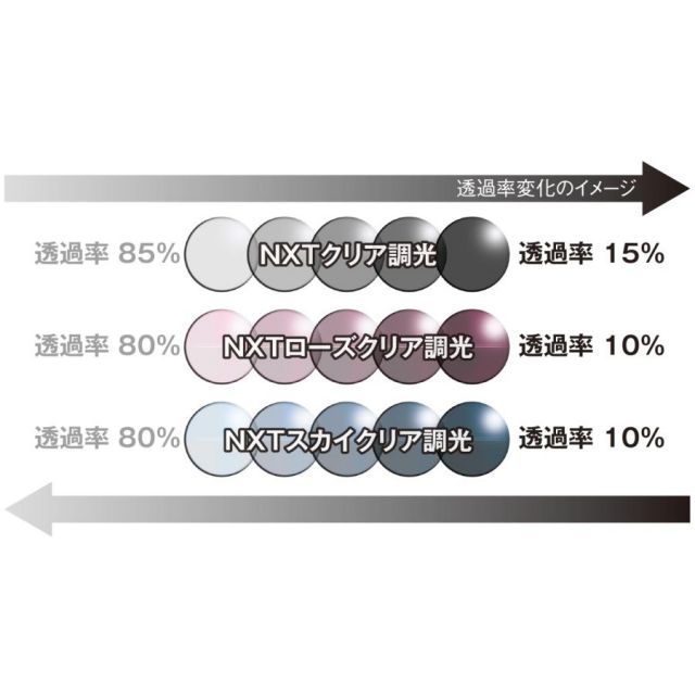 ※調光レンズは使用環境により、調光濃度及び調光スピードが異なります。