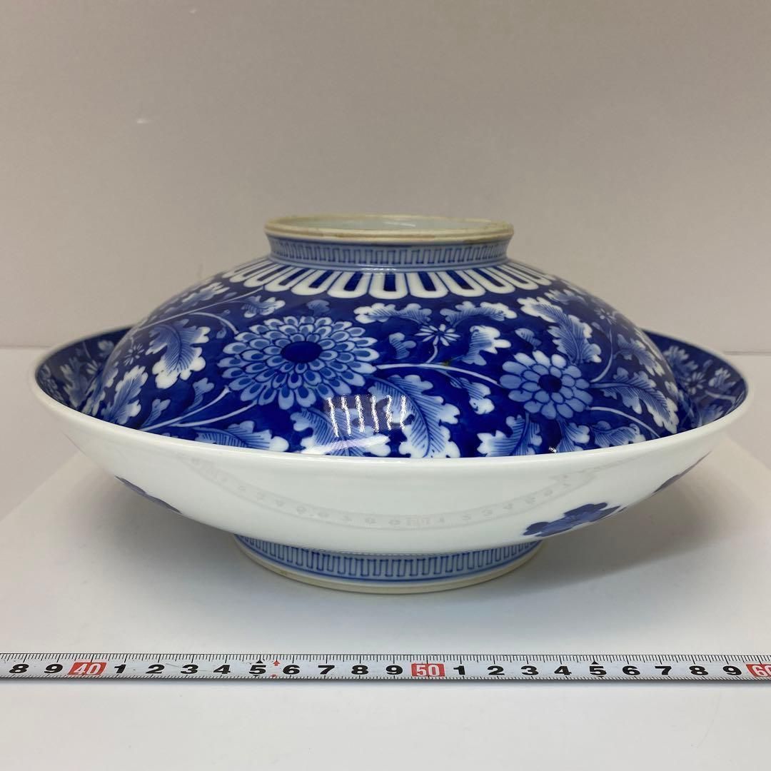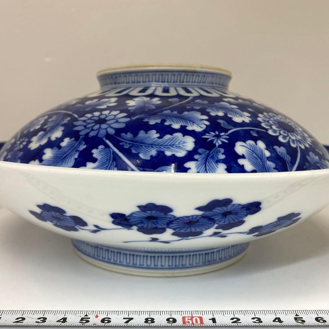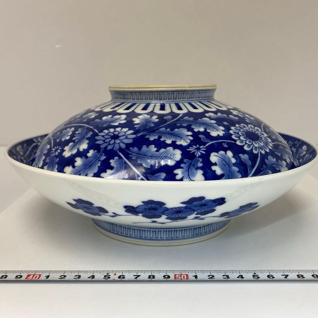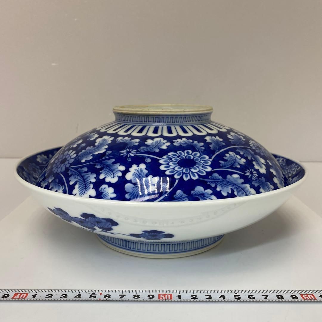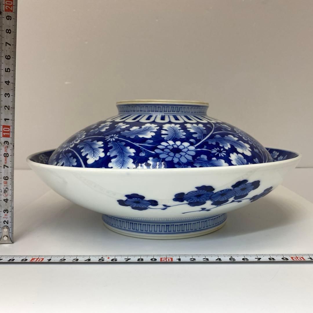 在銘 染付蓋物 身直径27.5㎝ 東Y6-0611②