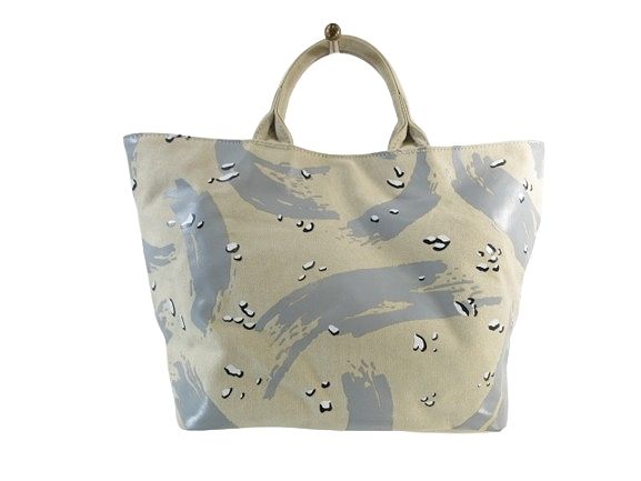 ビームス BEAMS DESIGN ハンドバッグ トートバッグ ロゴ プリント 総柄 キャンバス アイボリー QQQ