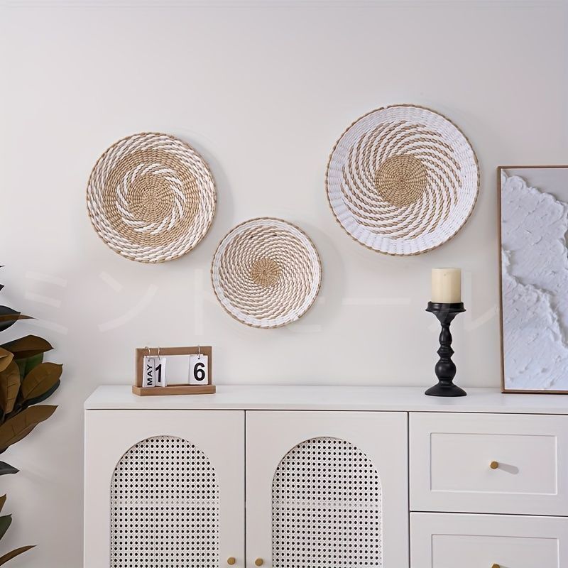 壁掛けインテリア 丸型 バスケット ウォールインテリア かご 籠 壁飾り アートパネル サークル 装飾 ホワイト 白 デコレーション ウォール