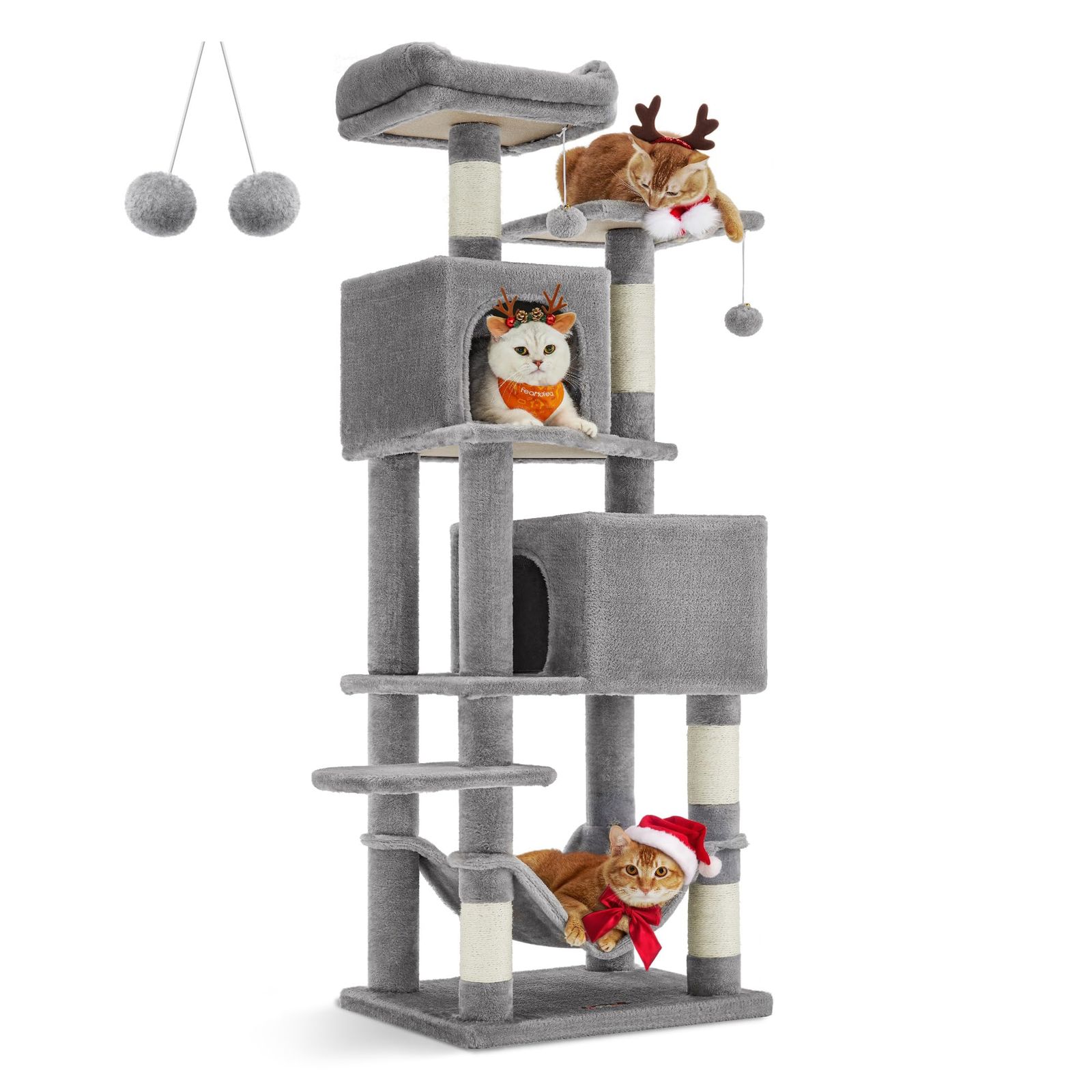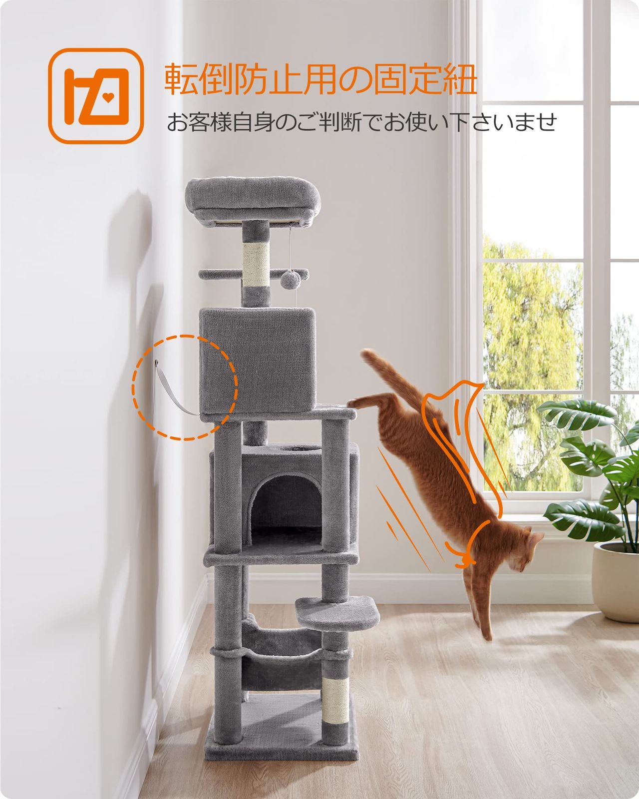 【迅速発送】FEANDREA キャットタワー 猫タワー スリム 大型猫 多頭飼い 据え置き 省スペース ハンモック付き 爪とぎ 運動不足解消 高さ155CM PCT192W01