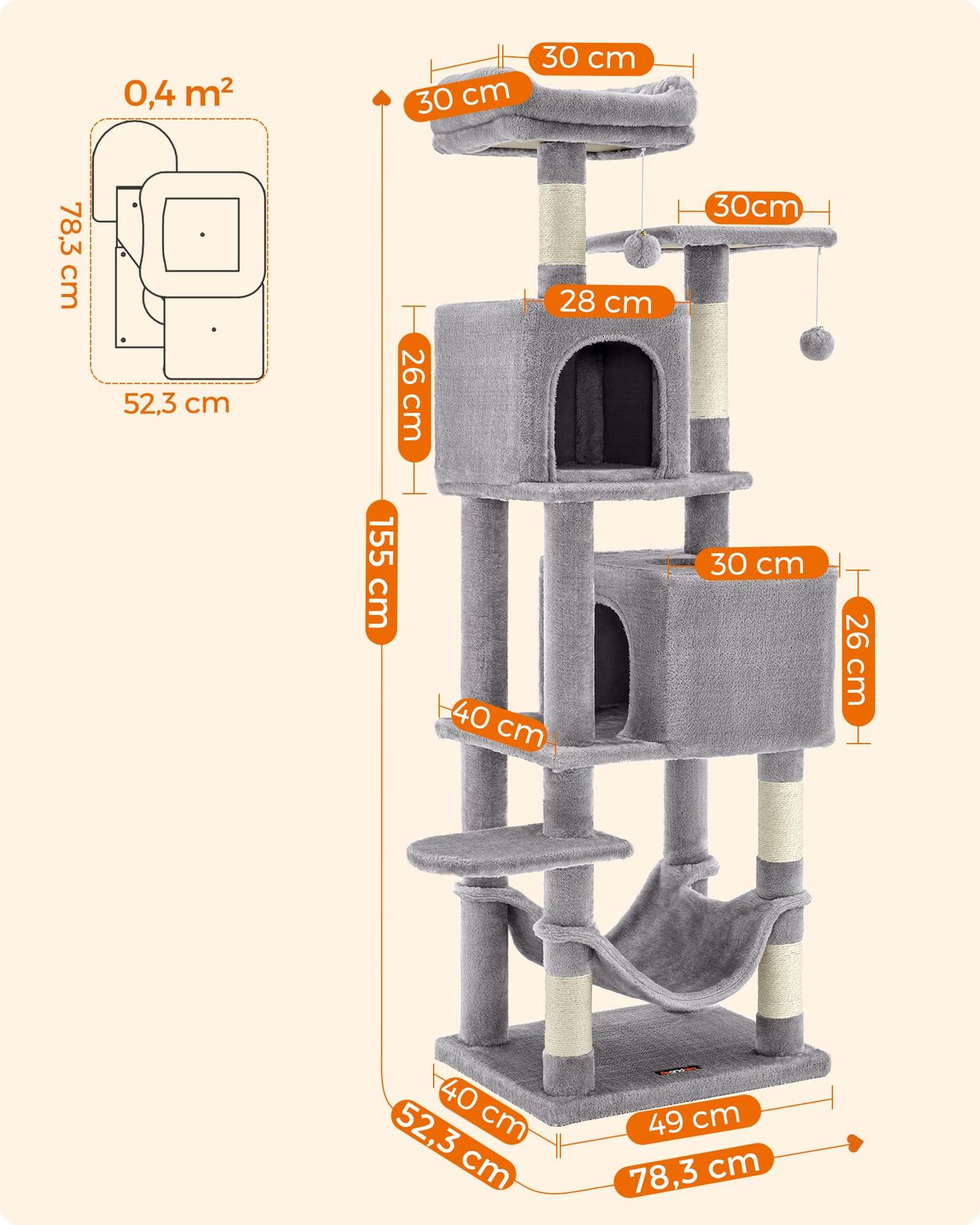 FEANDREA キャットタワー 猫タワー スリム 大型猫 多頭飼い 据え置き 省スペース ハンモック付き 爪とぎ 運動不足解消 高さ155CM PCT192W01