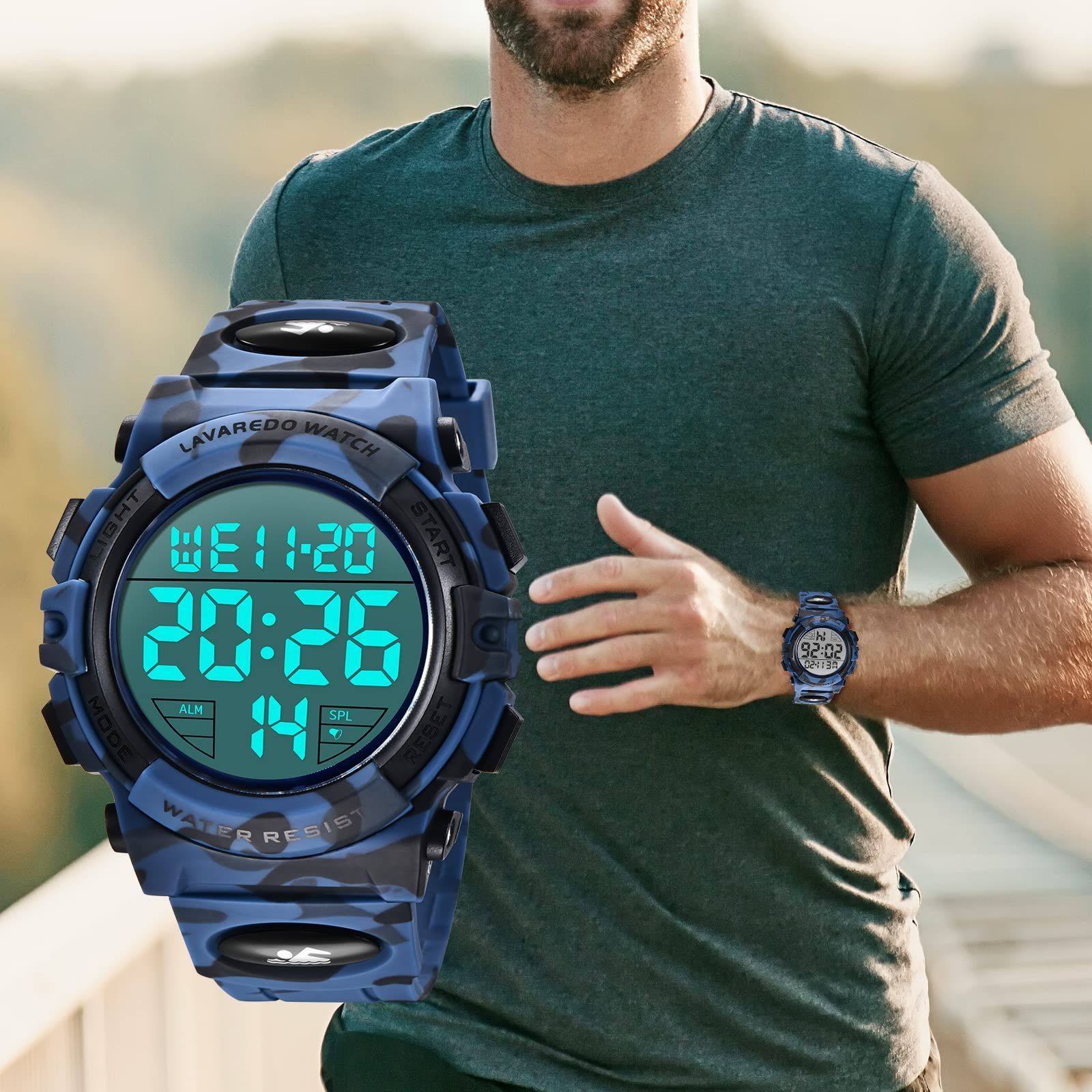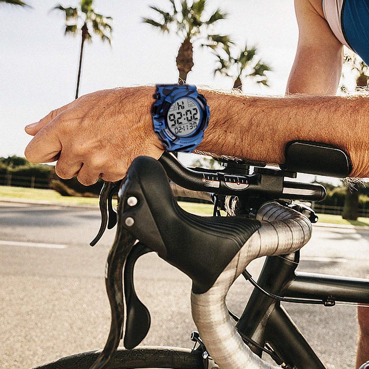 [スポーツ腕時計]ファッションな外観デザインとスポーティーなダイヤルスタイル、スポーツウォッチとしては良い選択です。大きな文字盤とLEDバックライト付き、暗闇の中でも正しい時間を示し、読みやすいです。大きなデジタル表示と発光デザインで、高齢者でも使いやすい。ランニング、登山、釣りなどのアウトドアスポーツと屋内スポーツの両方に最適です。