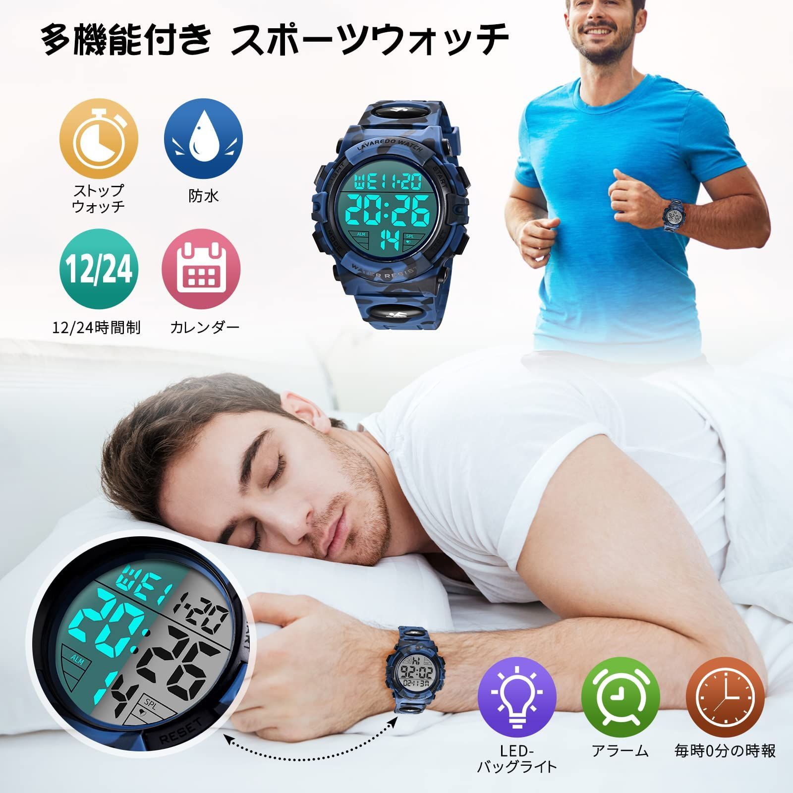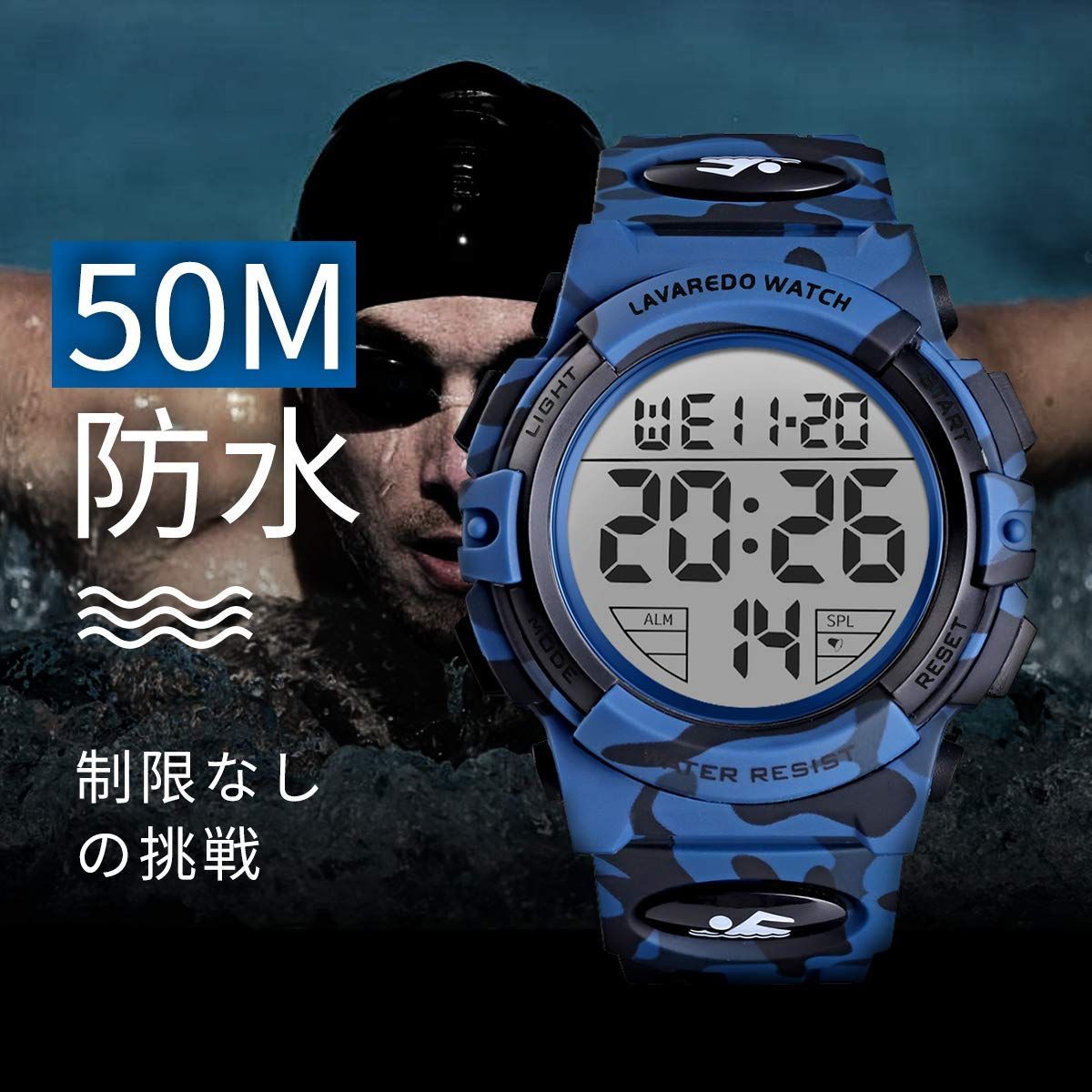 腕時計 メンズ デジタル 50メートル防水 日付 曜日 アラーム LED表示 多機能付き 防水腕時計 スポーツウォッチ アウトドア デジタル腕時計 取扱説明書付き