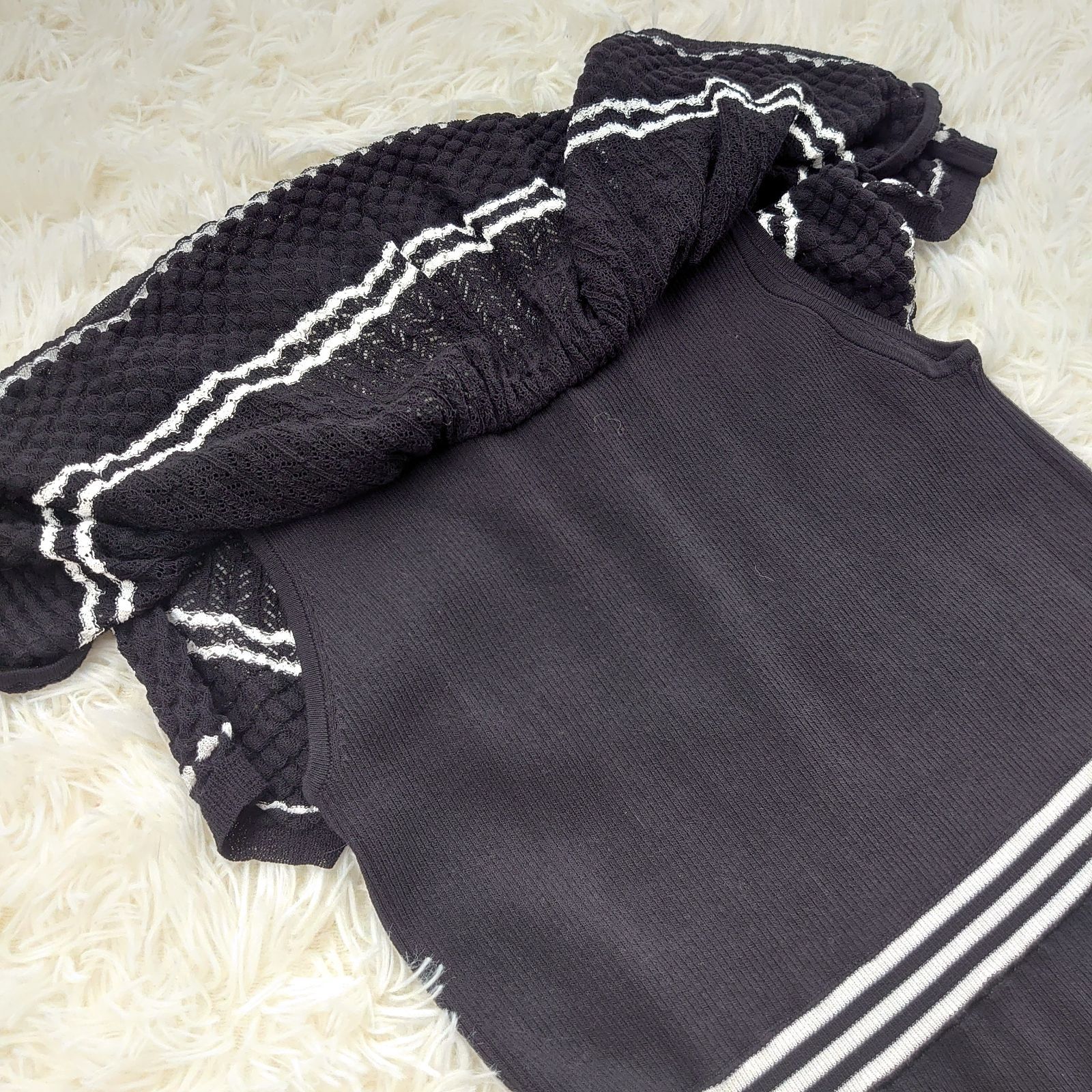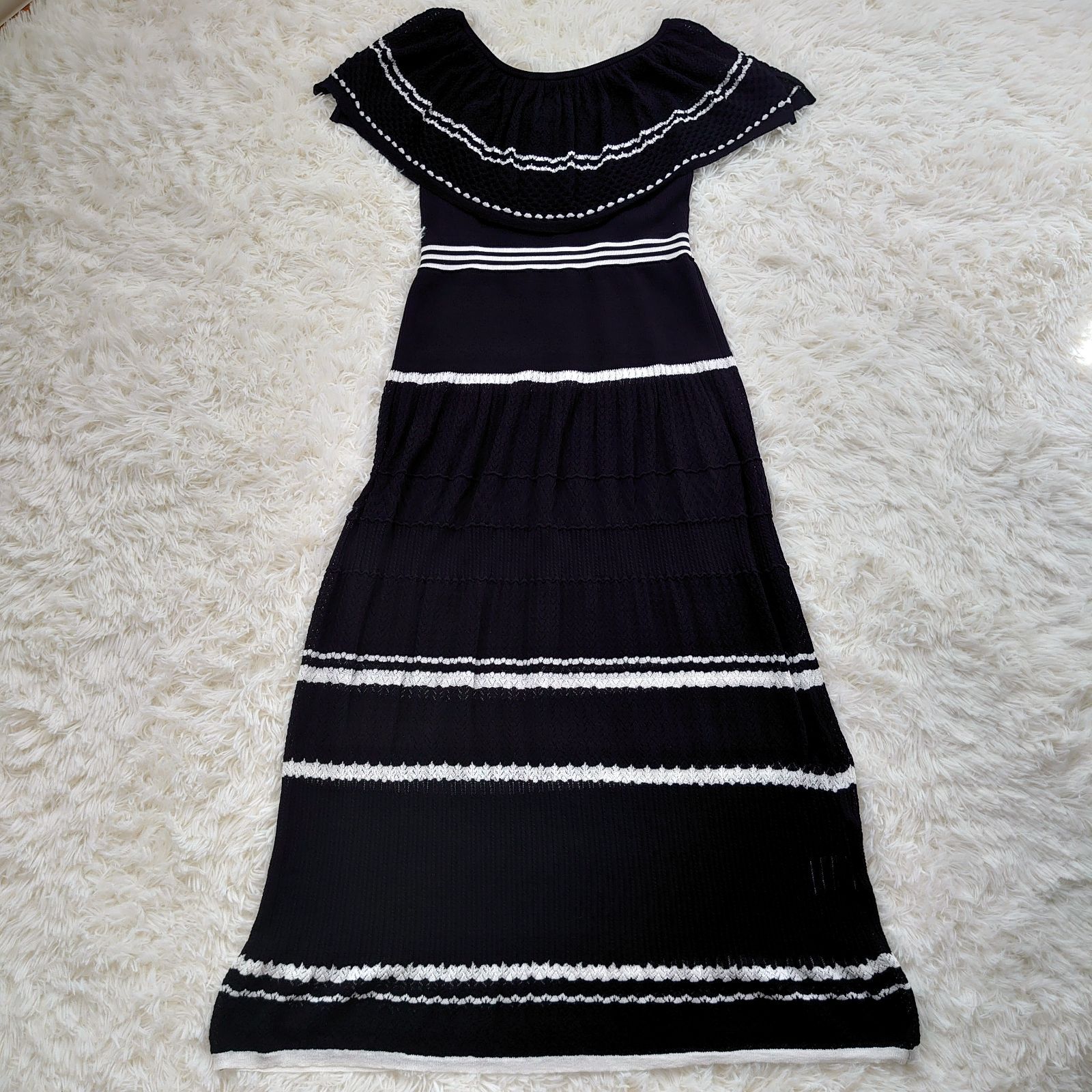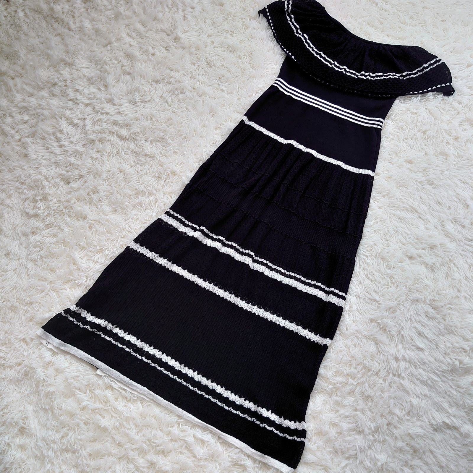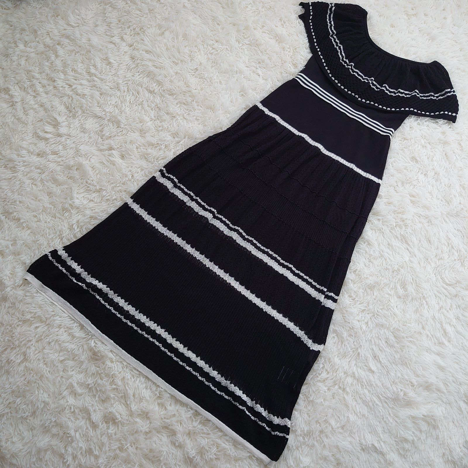 Diagram ダイアグラム バイカラーレーシーニットワンピース ペチコート付き 36 オフショル