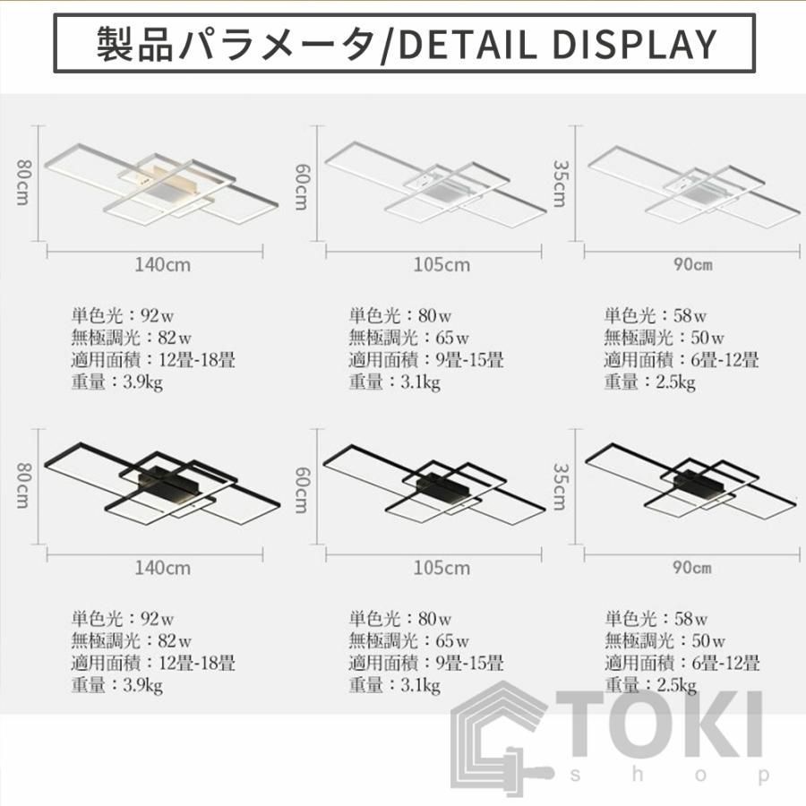 105*60cm 暖色光と白色光:80w 無極調光:65w 適用面積:8畳‐12畳
