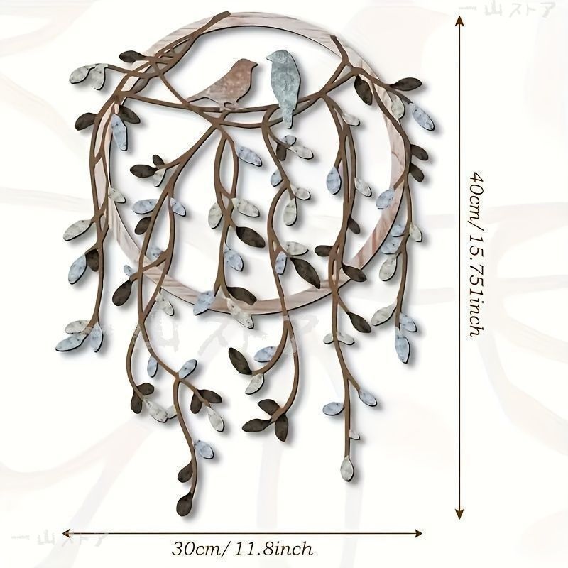 壁掛け 北欧 モダン ウォールインテリア メタルウォールアート 鳥 小鳥 葉っぱ 植物 枝 アンティーク風 ヴィンテージ風 金属 ホームデコ 壁