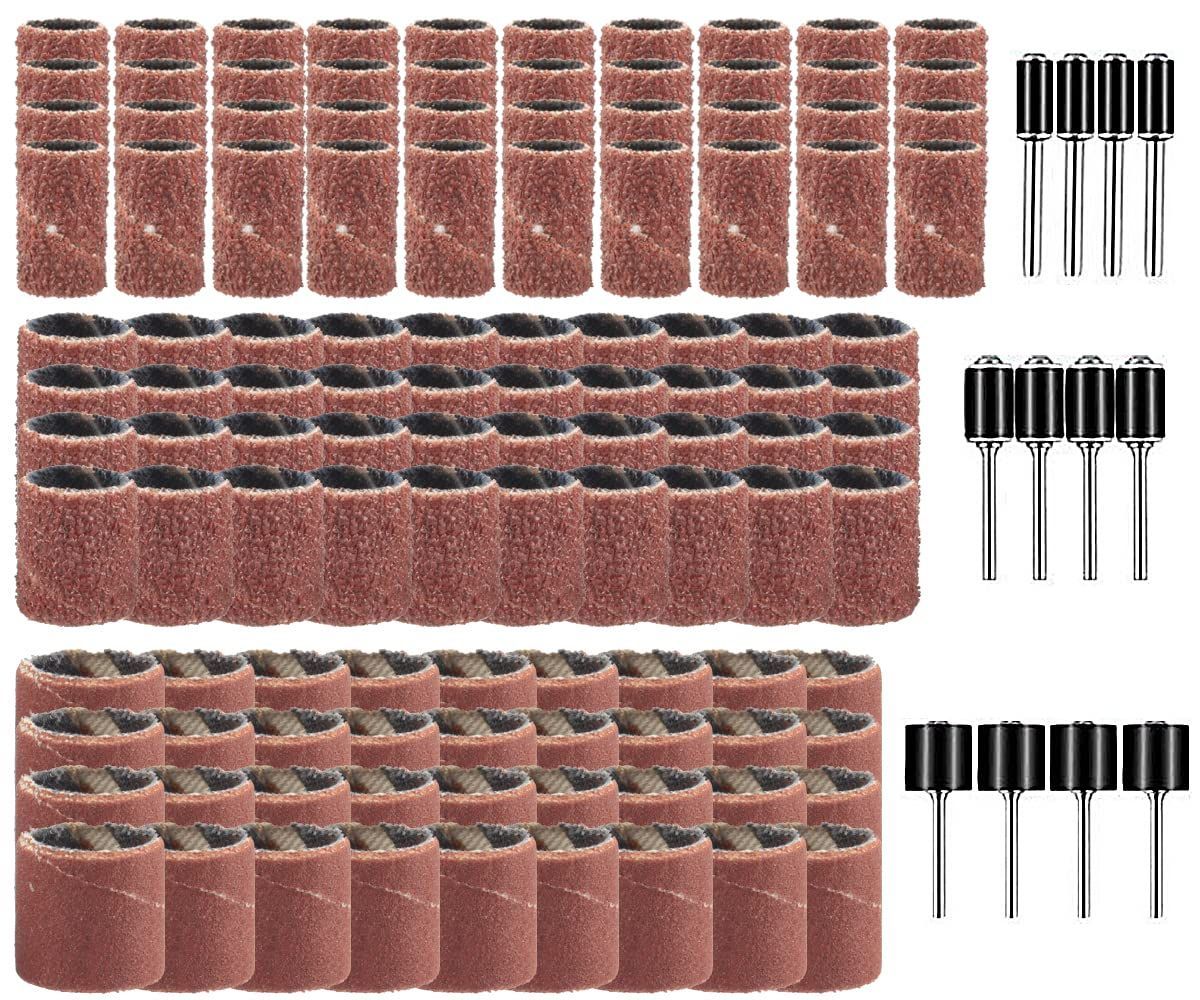 Wolfride 132個セット サンディングバンド ルーターヤスリ 電動ヤスリ 電動ルーター ドリルプレス用 ネイルオフ ネイルビット 180# 120# 80# 研削 研磨工具 木工 ロータリーツール DIY工具 12本3.17mmシャフト付