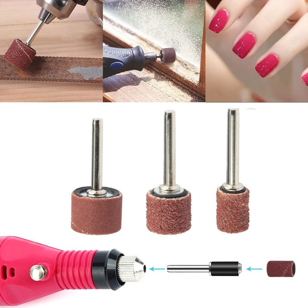新着商品 Wolfride 132個セット サンディングバンド ルーターヤスリ 電動ヤスリ 電動ルーター ドリルプレス用 ネイルオフ ネイルビット 180# 120# 80# 研削 研磨工具 木工 ロータリーツール DIY工具 12本3.17mmシャフト付