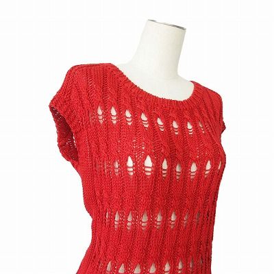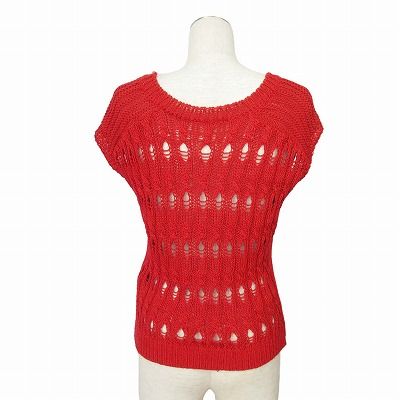 インディヴィ INDIVI ニット サマー 透かし編み 38 赤