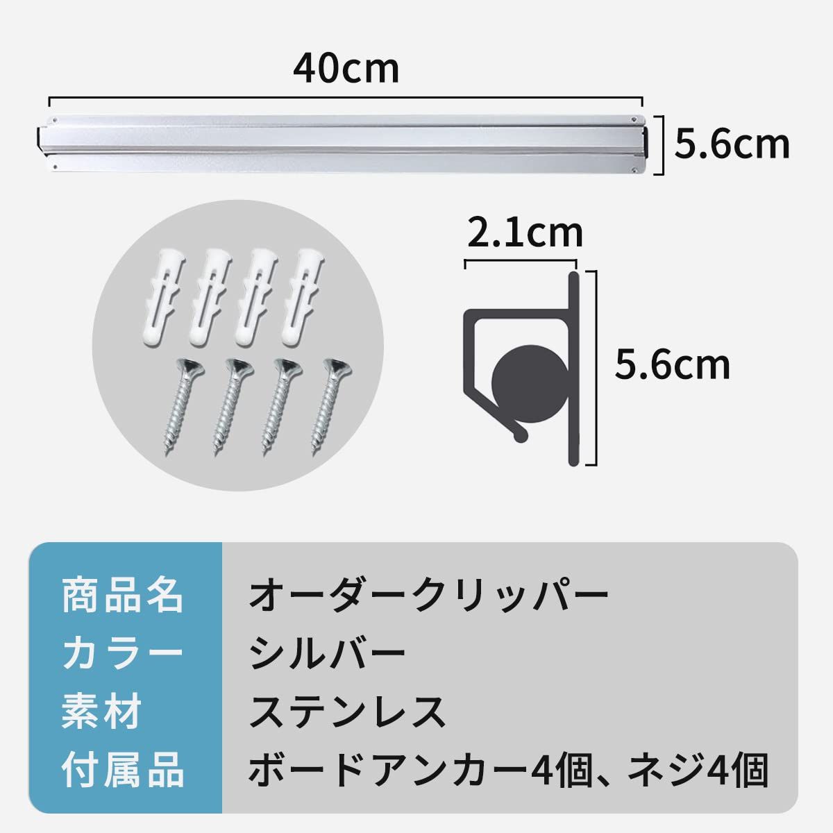 【商品内容】オーダークリッパー 【カラー】シルバー 【サイズ】長さ:30㎝/40㎝/50㎝ 高さ:5.5~6㎝ 【素材】ステンレス ※モニターの環境により、色の見え方に若干差が生じる場合がございます。
