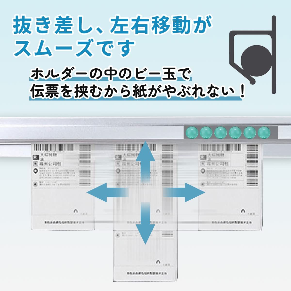 【差し込みスムーズ】伝票ホルダーの中のビー玉が入っていて、紙の抜き差しが片手で簡単に行えます。差し込んだままの横へのスライドも滑らか。紙が破れたり、ひっかかったりしません。