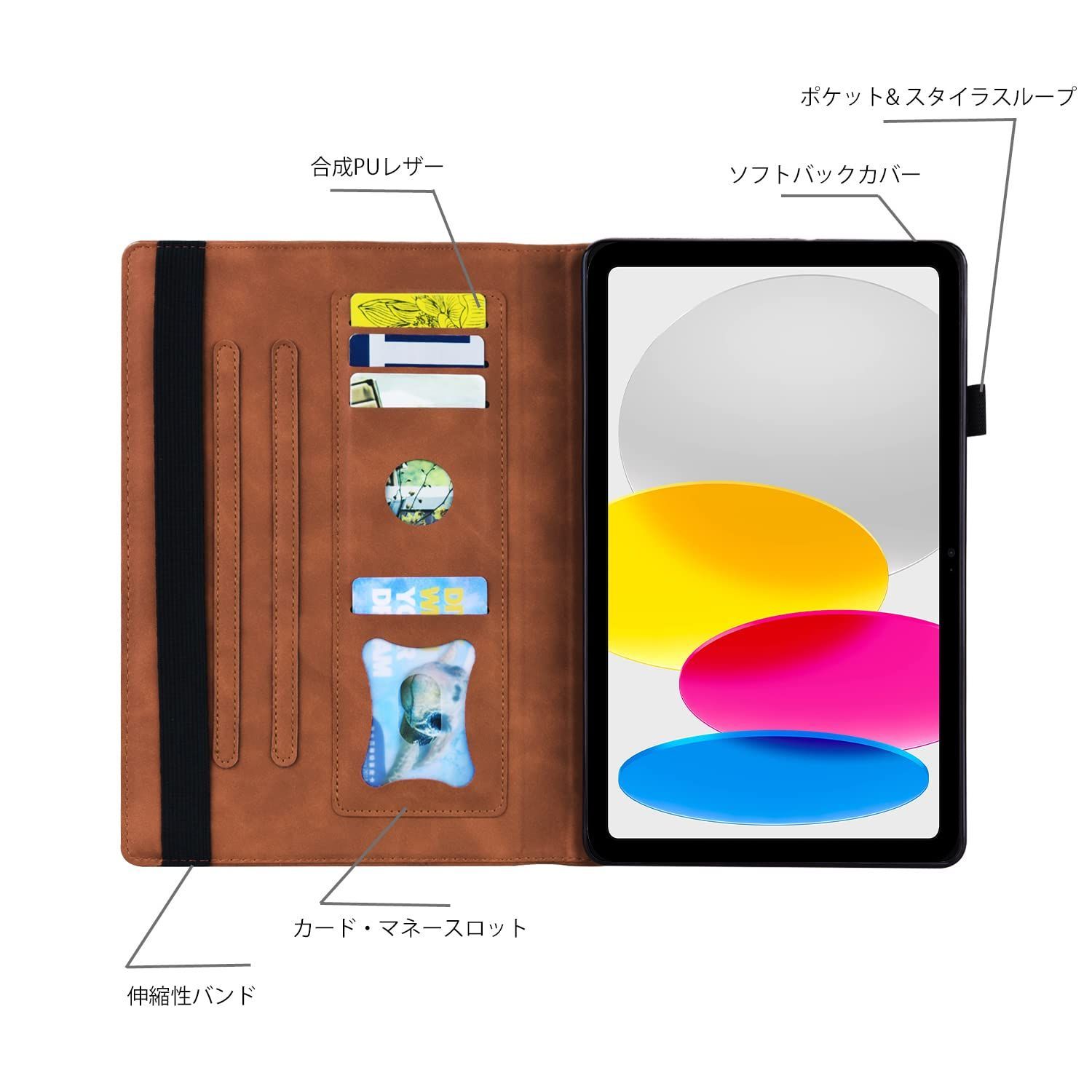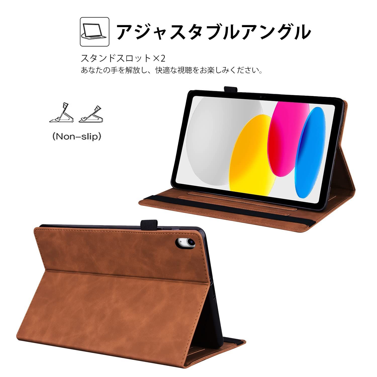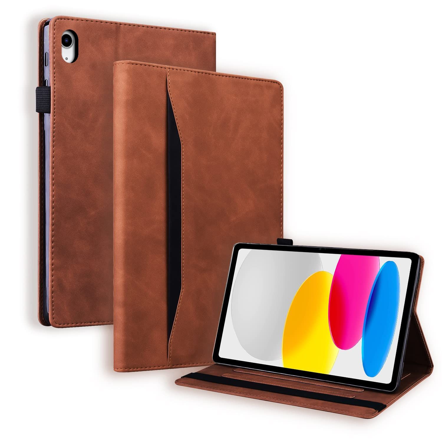 iPad 第10世代 ケース 2022 10.9 インチ カバー シンプル ビジネス ipad 10世代 ケース 2022モデル PUレザー TPU全面保護 衝撃吸収 ipad ケース 第10世代 10.9インチ カバー iPad 第10世代 カバー 軽量 スタンド機能 カード収納 Apple Pencilペン収納 キズ防止 指紋防止 (モデル番号:A2696/A2757/A2777)ブラウン