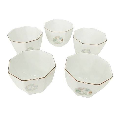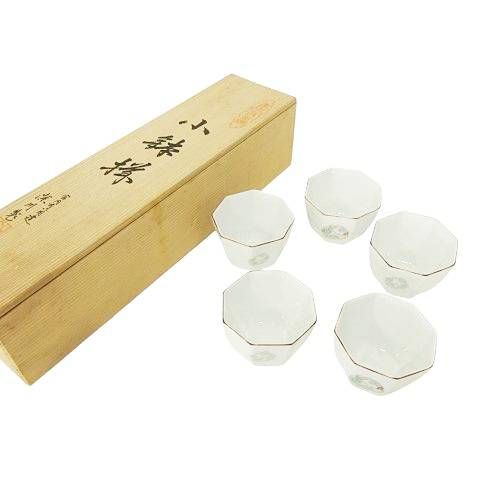 深川製 美術 有田焼 八角 小鉢 5皿 セット 食器 木箱付き テーブルウエア 白 ホワイト