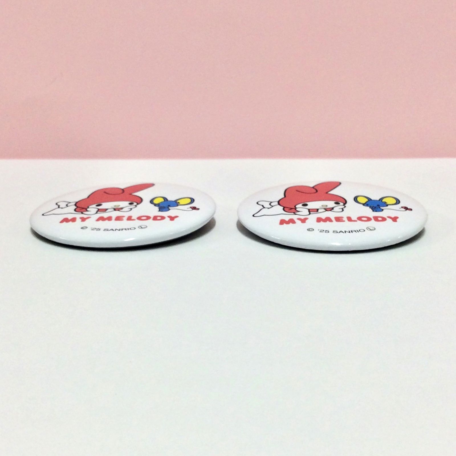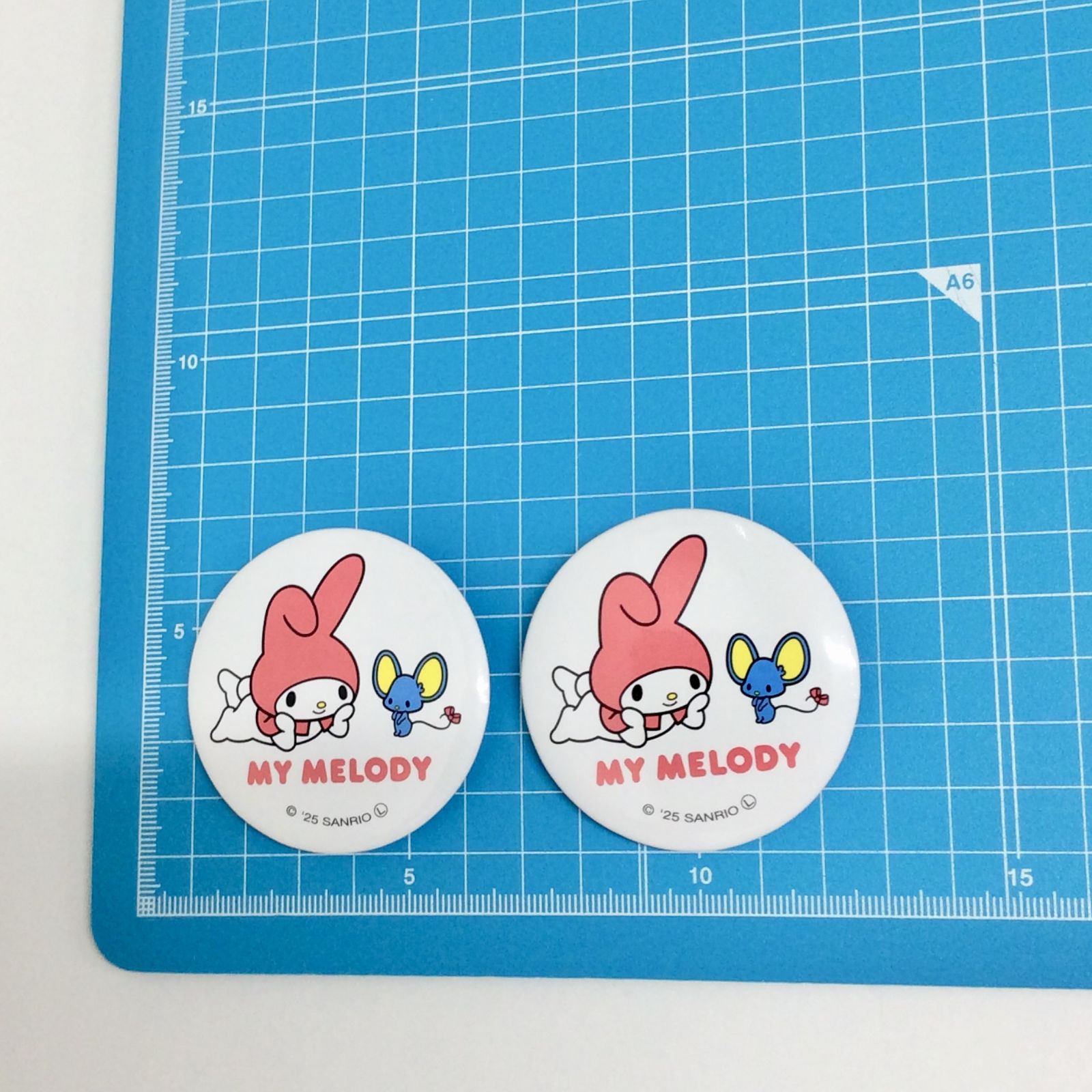 商品名 :マイメロディ 50周年記念 缶バッジ(マイメロ&フラットくん) 2個セット