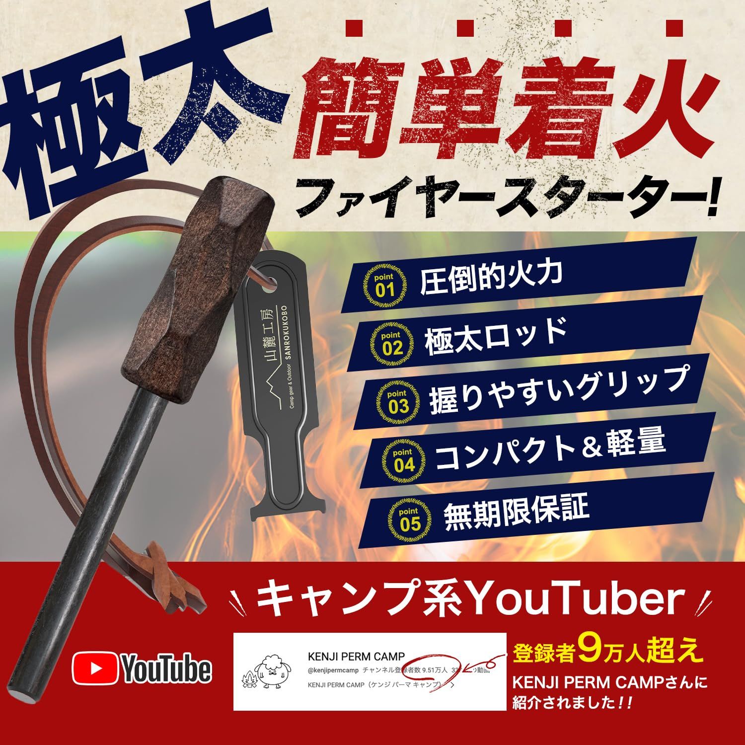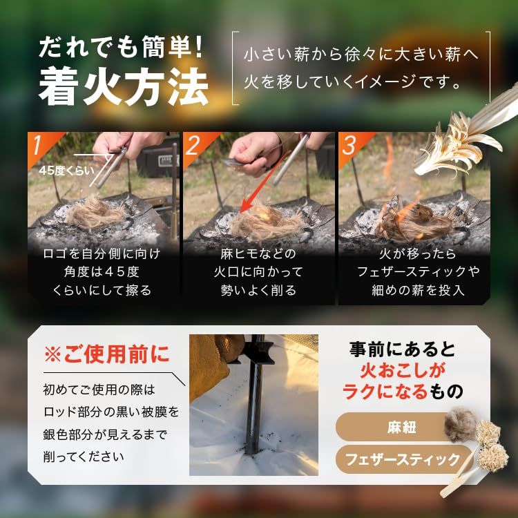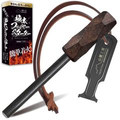 BBQ 火起こし キャンプ 火打ち石 収納ケース付き フェロセリウム 着火 大きい 無期限メーカー 簡単着火 (ダークブラウン) ファイヤースターター 極太 山麓工房