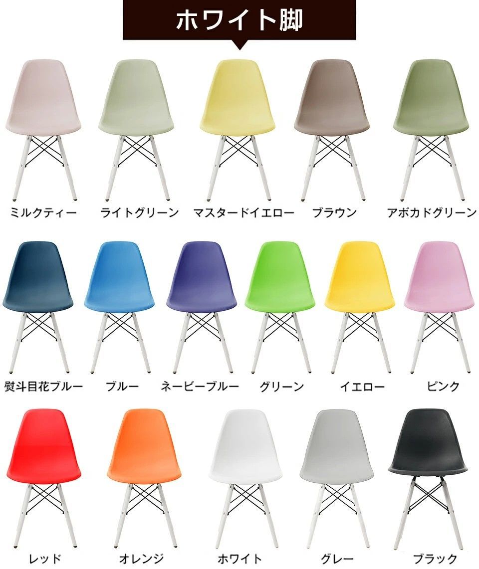 【商品仕様】商品サイズ:幅46×奥行40×高さ82.5cm(座面高:44.5cm)重量:5kg 静止耐荷重:約100KG素材:張り地:プロ仕様 高級PP樹脂素材 脚部:天然木座面カラー: ホワイト/ブラック/レッド/グレーン/オレンジ/ブルー/イエロー/ピンク/マスタードイエロー/ブラウン/シルバー(グレー)/ネービーブルー/ライトグリーン/アボカドグリーン/ミルクティー脚カラー:ナチュラル/ブラウン/ダークブラウン生産国:中国組立品/完成品: 組立品