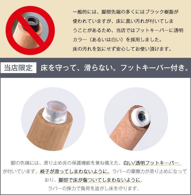【傷つき防止の安心設計】脚裏には床の傷付きを防ぐ滑りとめ付き。大切な家屋へのキズ防止を促します。