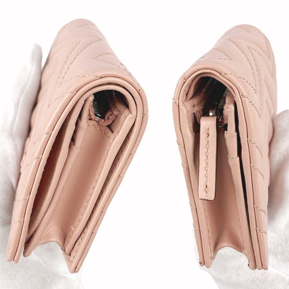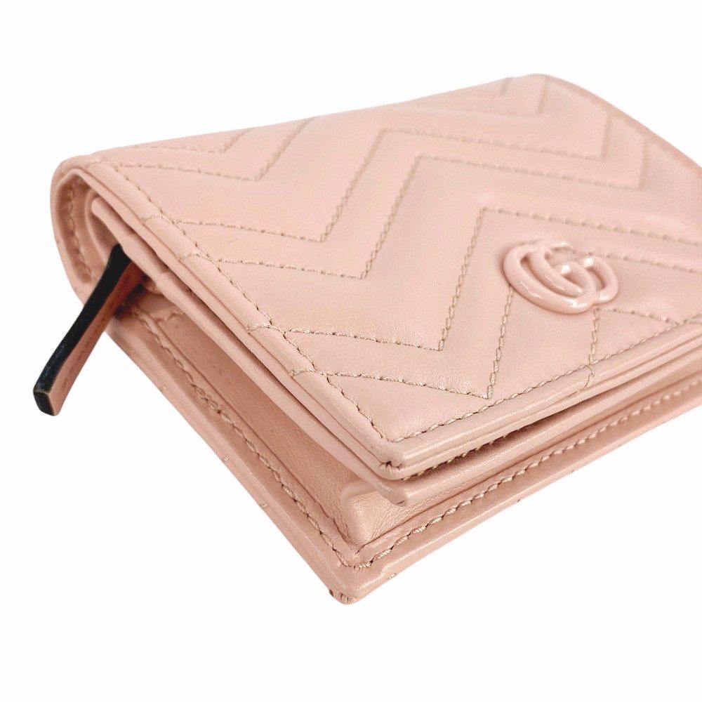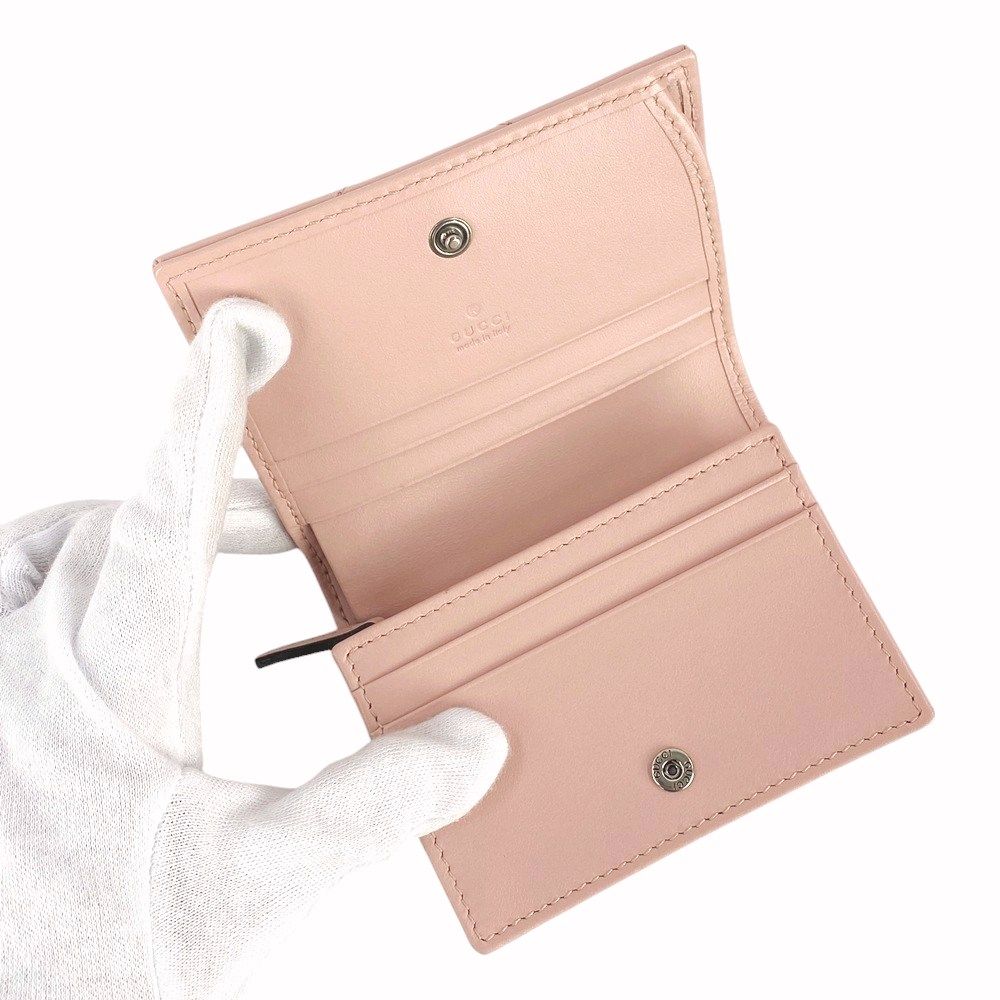 ■新同■ グッチ GG マーモント 二つ折り コンパクト ウォレット 財布 レザー ピンク 466492 箱【316234】5