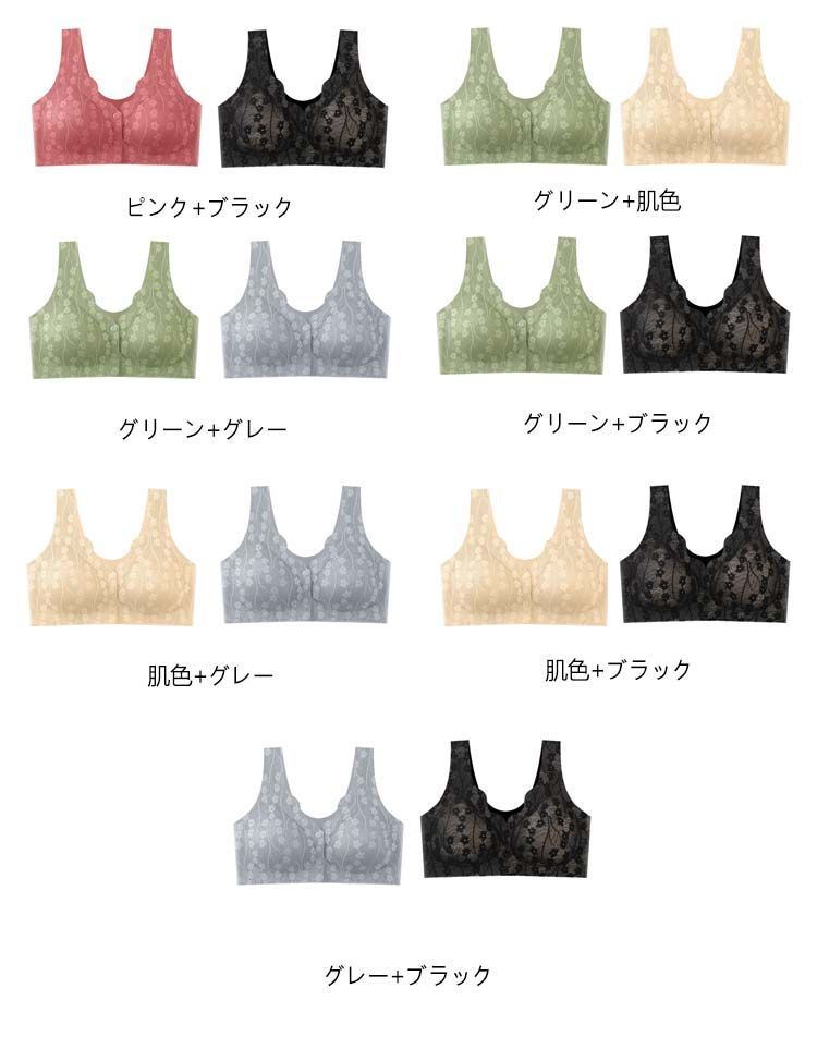 ノンワイヤーブラ フロントホック 前開きブラ ノンワイヤー ブラジャー 2枚セット 乳がん用ブラ フロントホックブラ 前開き 前あきブラ ナイトブラ 授乳 術後 伸縮 ストレッチ 締め付けない 脇高 #zjjj2158