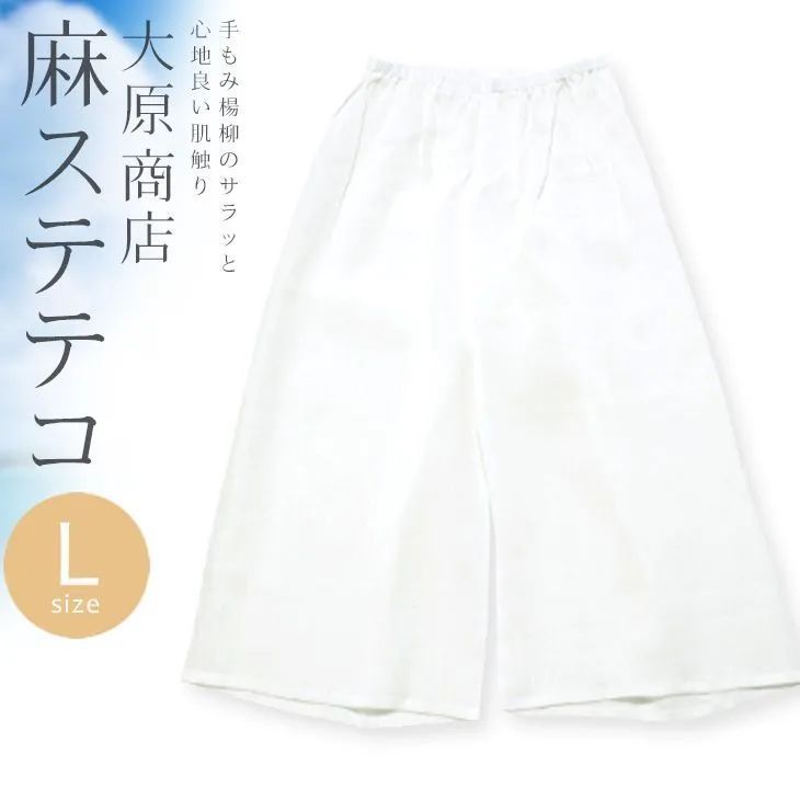 涼しい夏の裾よけステテコ 本麻 手もみ楊柳 L寸《大原商店》着物・和装肌着 女性用 白 パンツ裾除け ステテコ〔Lサイズ〕10007867