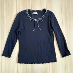 ギャラリーヴィスコンティ フリル付きネイビー長袖トップス