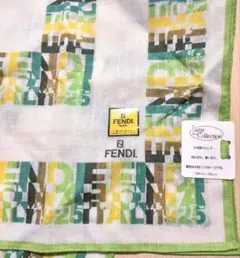 【未使用】フェンディ FENDI イヌ柄 リボン柄 大判 ハンカチ イエロー