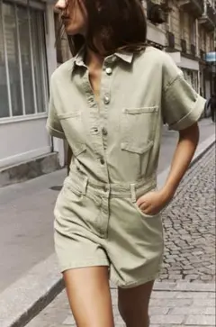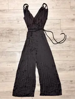 新品未使用品 ZARA リネンブレンドジャンプスーツ黒 L
