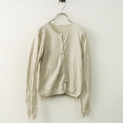 柔らかなベージュのカーディガン、長袖デザインで季節を問わず活躍します。