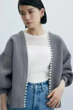 【ADAM ET ROPÉ/アダム・エ・ロペ】 パール付きネイビー カーディガン
