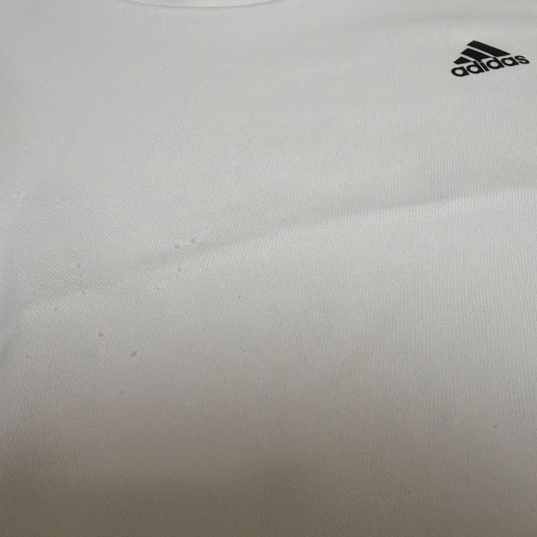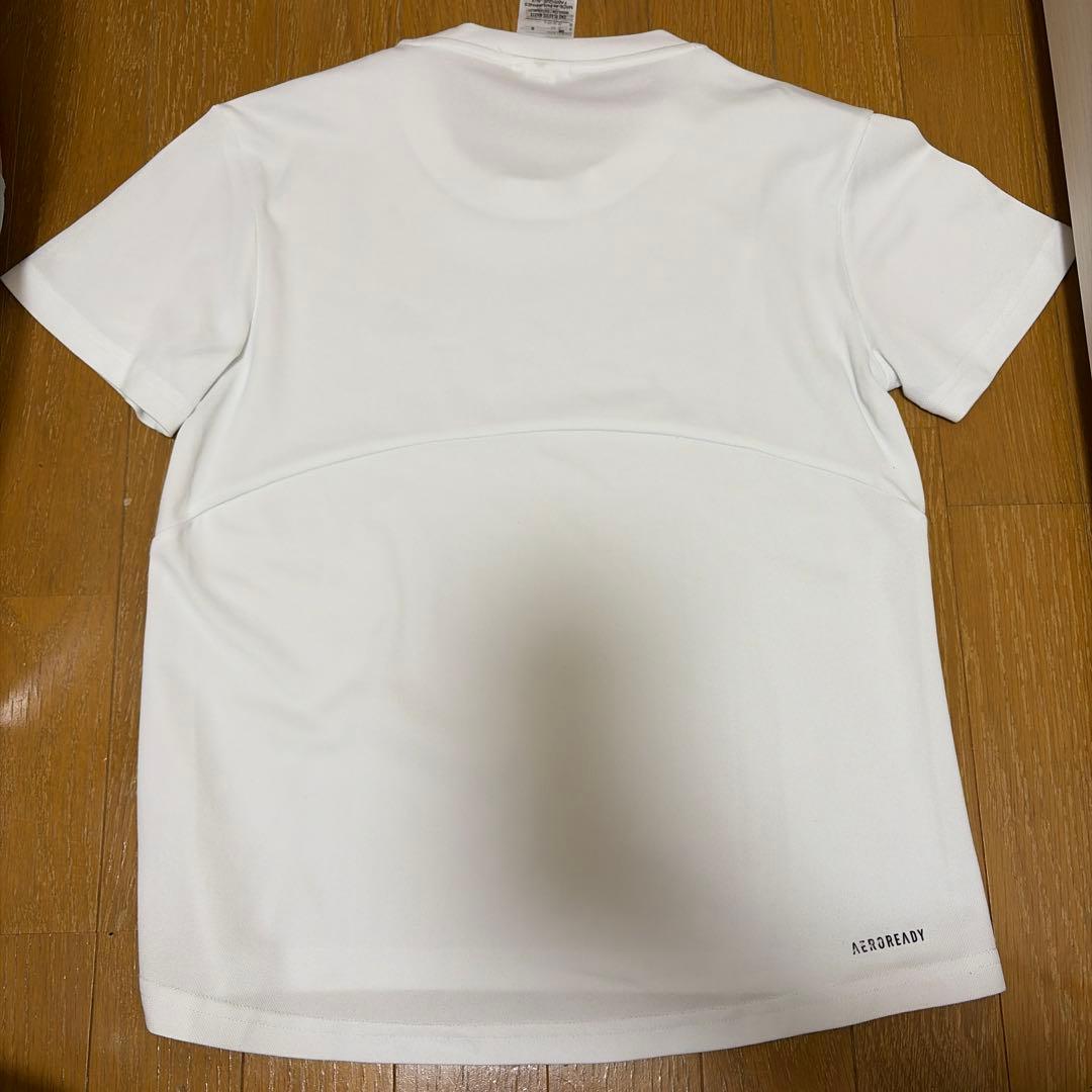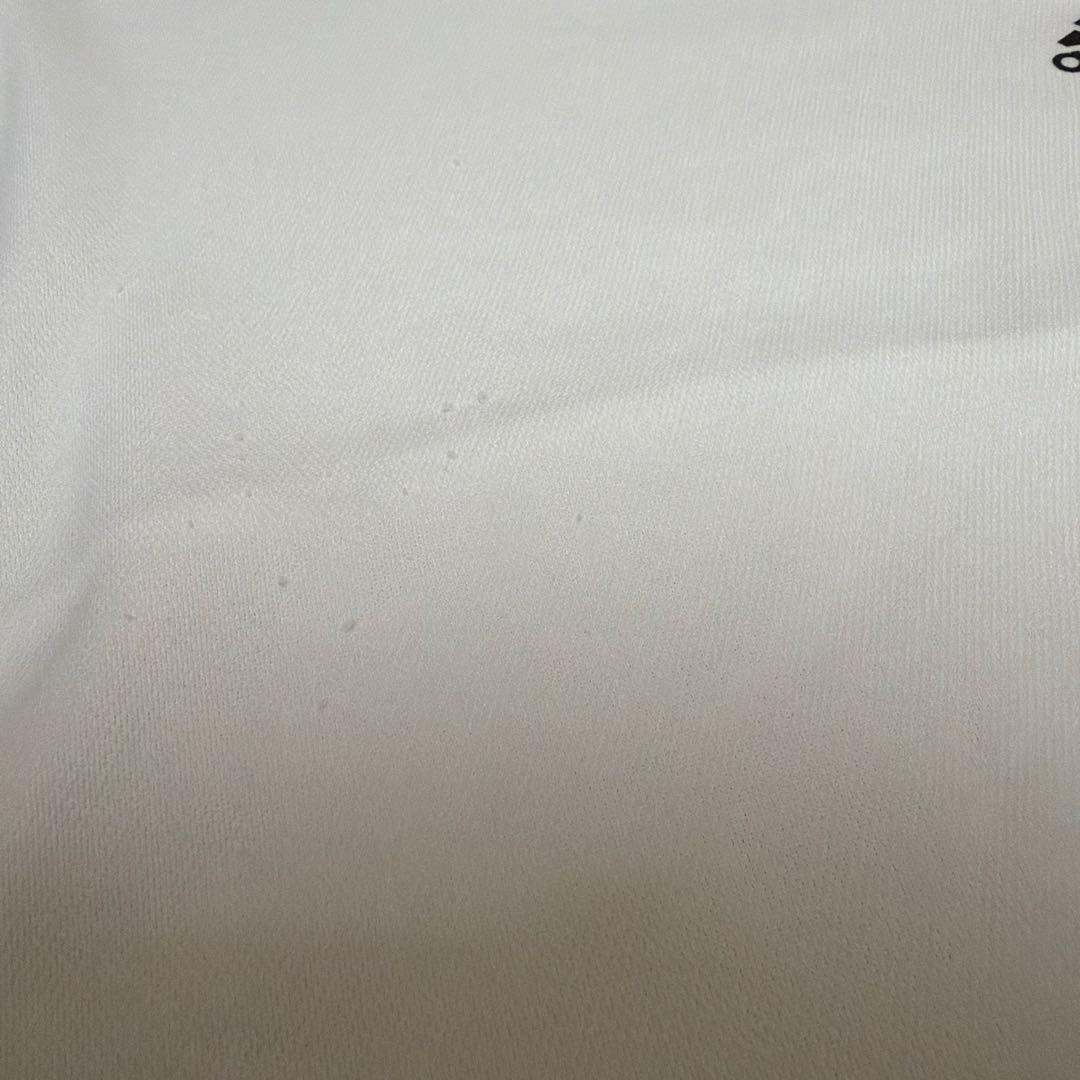 通気性に優れたポリエステル素材の白い半袖Tシャツ。