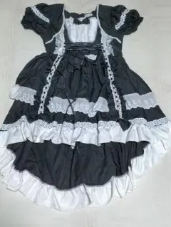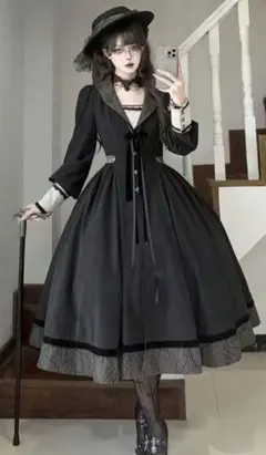 フリルとパール装飾のゴスロリドレス、バラと鳥かごのプリント付き。